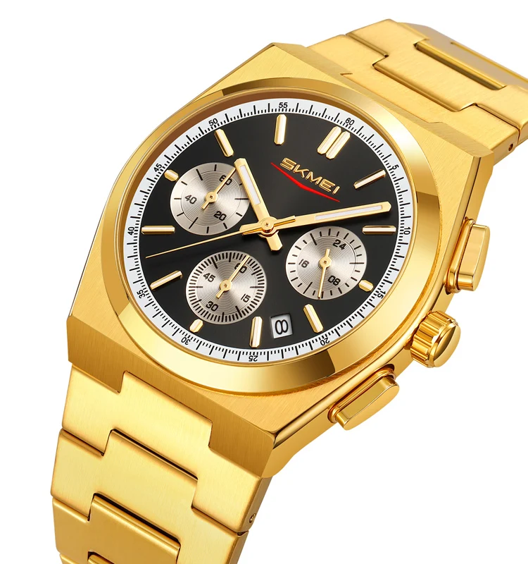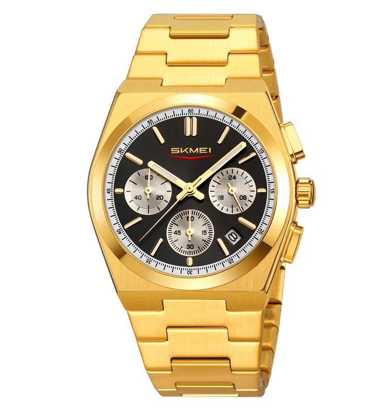 New SKMEI 9371 Luxury Antique Business Waterproof 3BAR Stainless Steel Quartz Men's Watch with Luminous Date