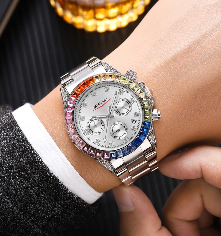 Skmei 9348 Luxury Charm Cartoon Auto Date Luminous Pointer Stainless Steel Strap Water Resistant Business Watch for Men