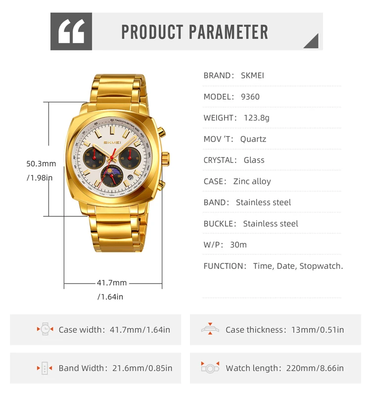 Famous Brand SKMEI 9360 New Model Date Wholesale Luxury Quartz Watches Stainless Steel Custom Logo Watches Men Wrist