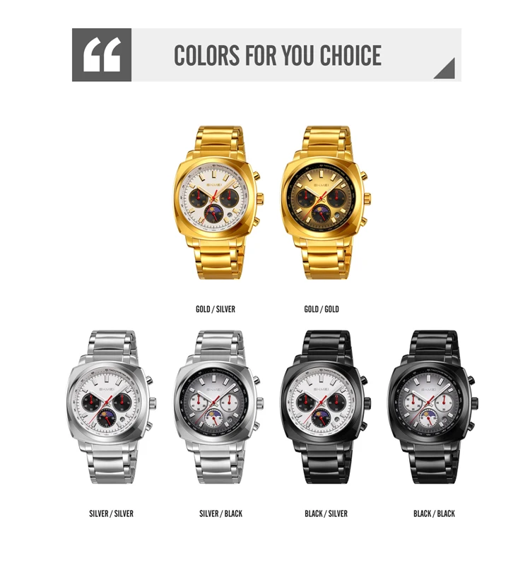 SKMEI Original 9360 Metal Watch Gift for Men Box Custom Designer Stainless Steel Western Watches with Cheap Price