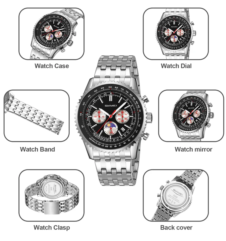 SKMEI 9348 Luxury Three Eyes Six Needles High Precision Dial, Fashionable, Elegant, Textured Dial, Sports Men's Quartz Watch
