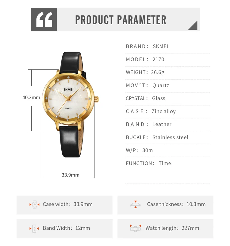 China Factory SKMEI 2170 Fashion Cheap Price Leather Lady Quartz Movement Watch 3ATM Waterproof Watches