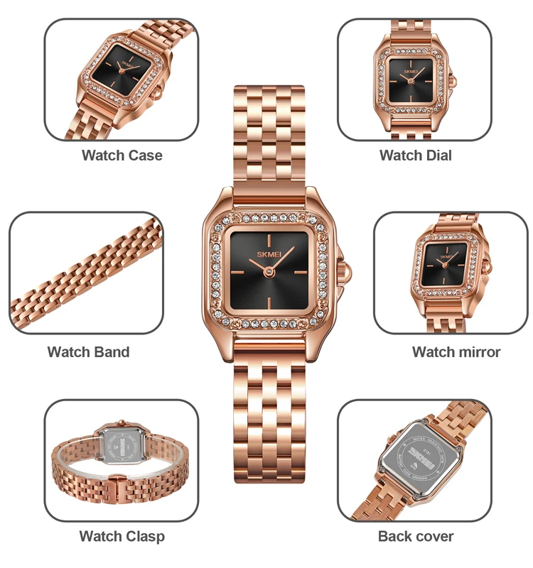 SKMEI 2181 Elegant Lady Quartz Watch Stylish Stainless Steel Band Waterproof Simple Business Wrist Watch