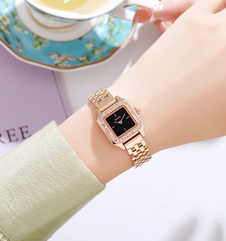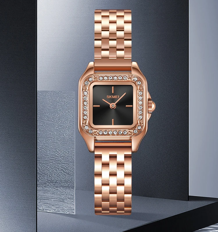 SKMEI 2181 Rose Gold Diamond Waterproof Watch Women's Stainless Steel Luxury Quartz Movement 3ATM OEM ODM Service Watch