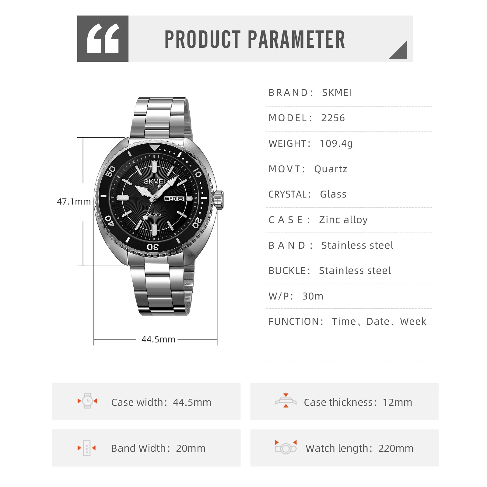 Skmei 2256 Luxury Fashion Cartoon Stainless Steel Quartz Movement Chronograph Date Waterproof Men's Watch Made in China