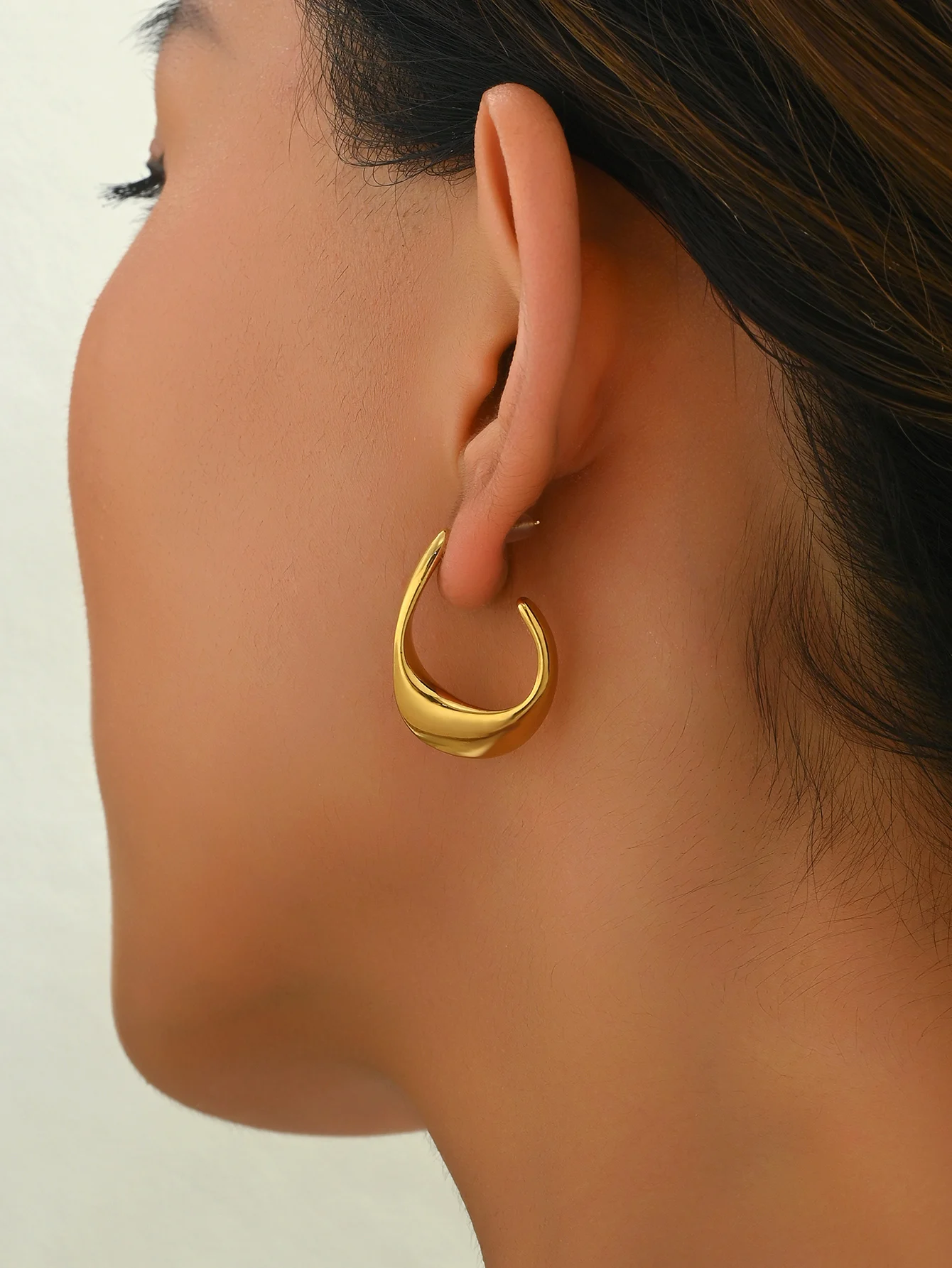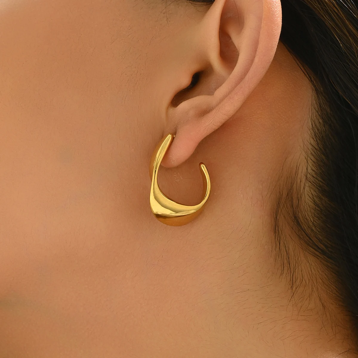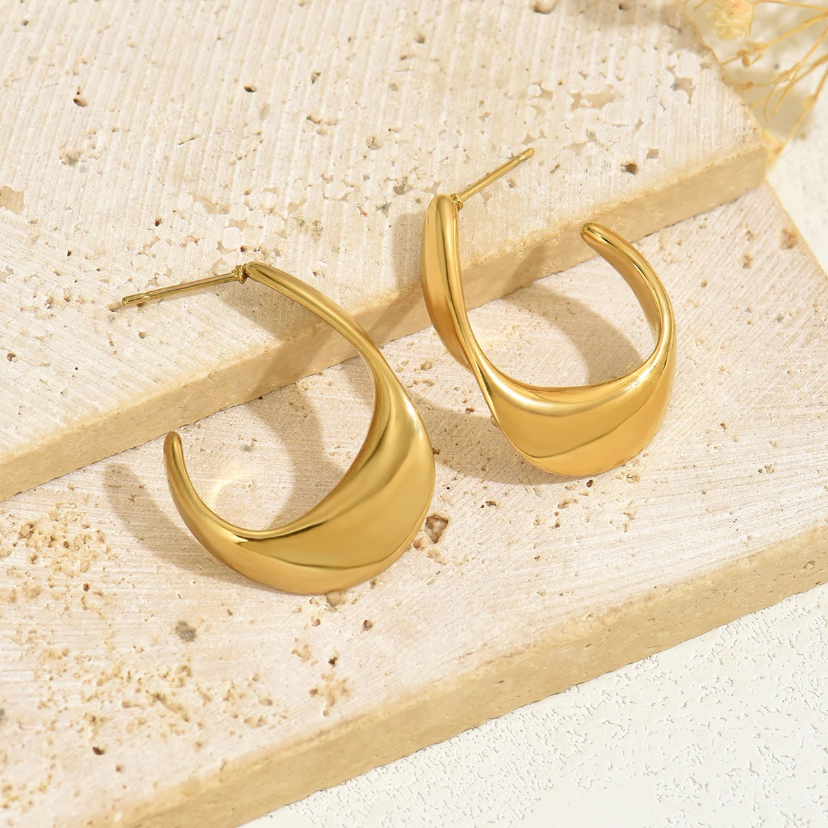 Irregular Shaped Trendy Hoop Earrings for Women 18K Gold Plated Stainless Steel Hypoallergenic Jewelry Made in China