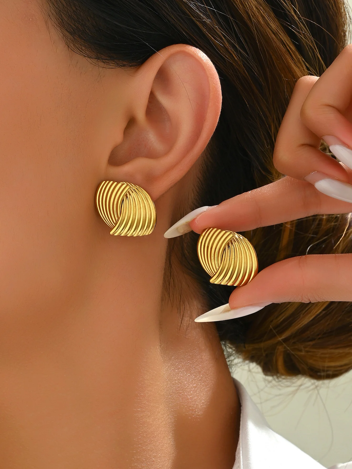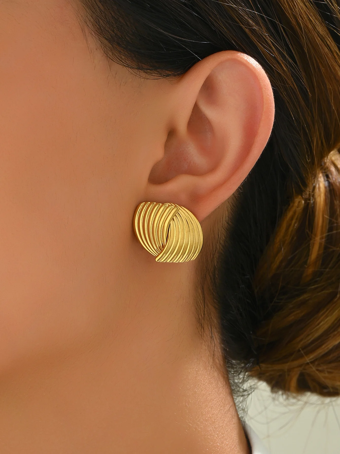 Trendy Wave Shaped Hoop Earrings for Women 18K Gold Plated Stainless Steel Hypoallergenic Jewelry