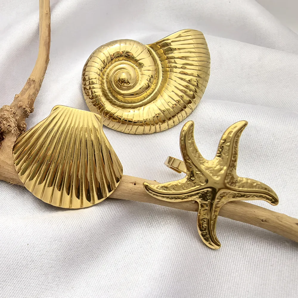 Bohemian Sea Star Hoop Earrings for Women Trendy 18K Gold Plated Stainless Steel Jewelry