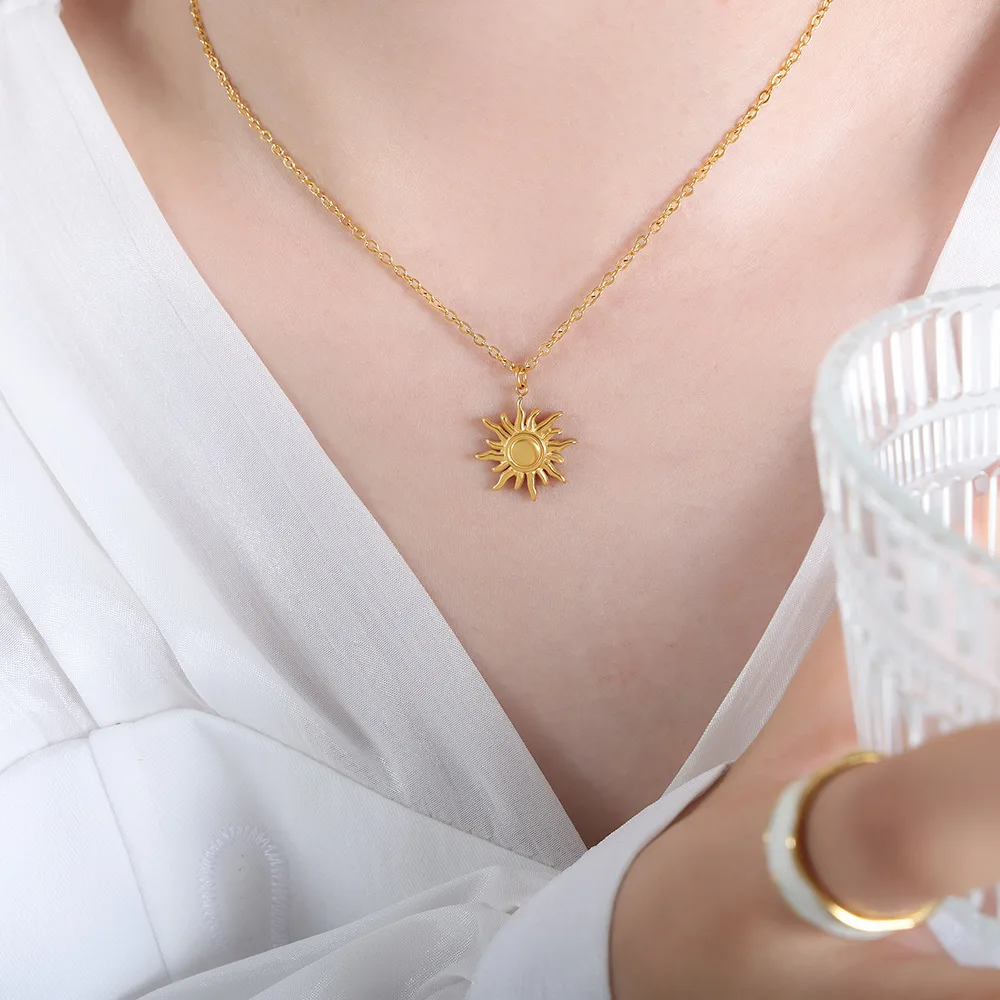 Stainless Steel Gold Plated Sun Pendant Necklace with Link Chain Trendy Fashion Jewelry for Women Wholesale