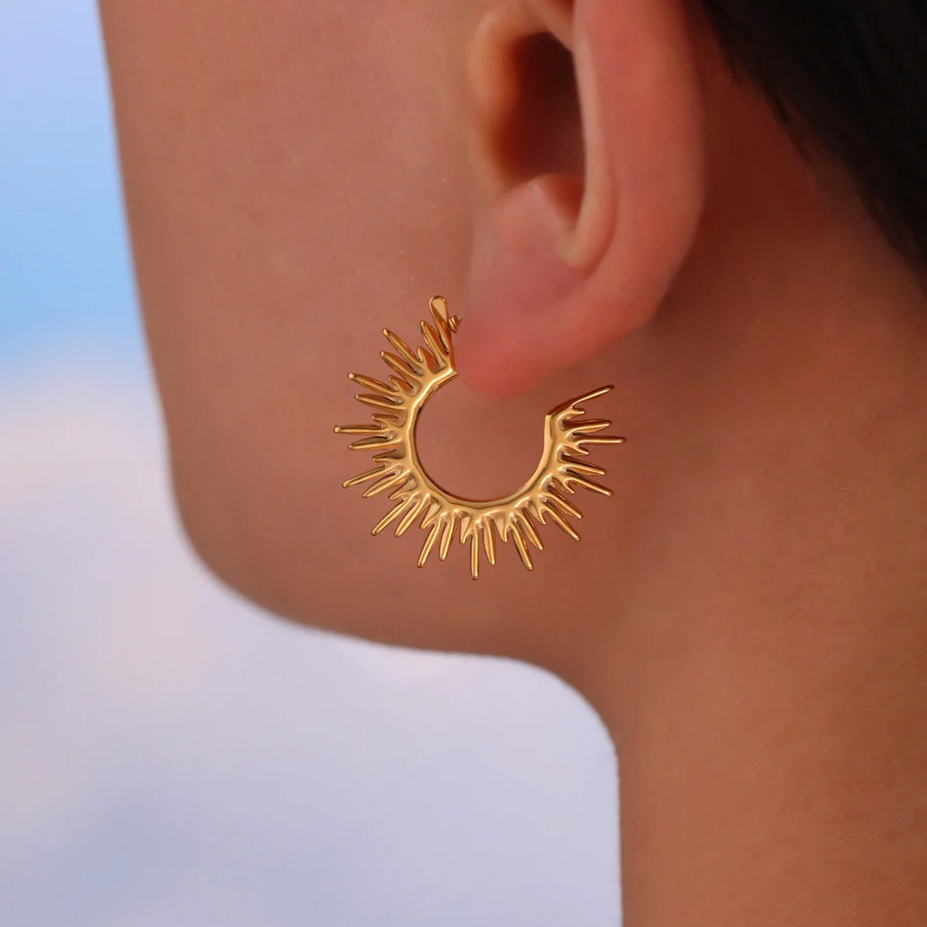 Sunflower Glow Trendy Hoop Earrings Retro C Shaped Stainless Steel for Women