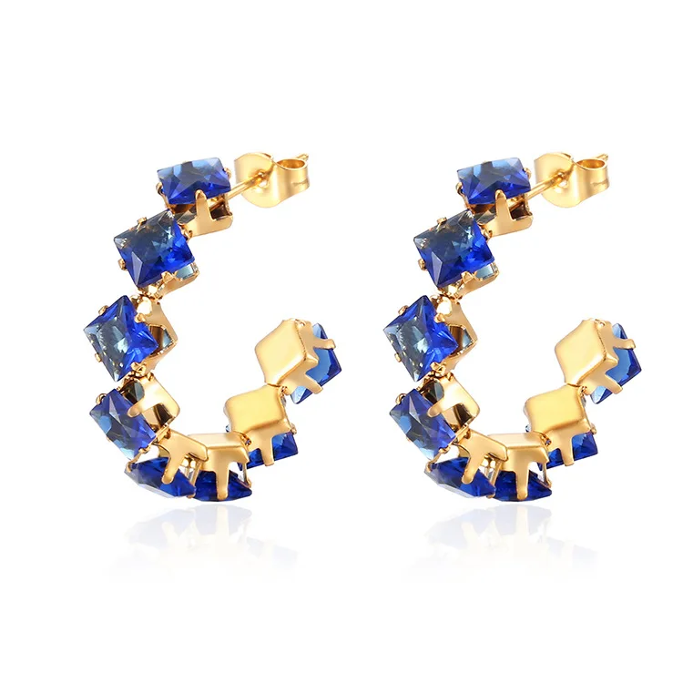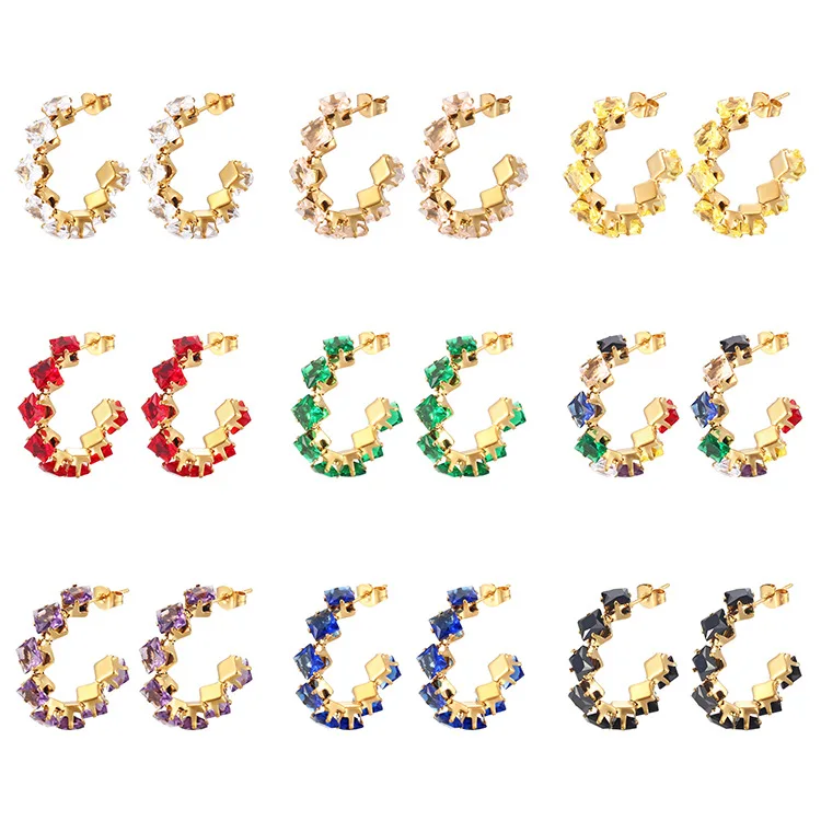 Stainless Steel Square Claws Zircon Stud Earrings Trendy Women's Ear Jewelry