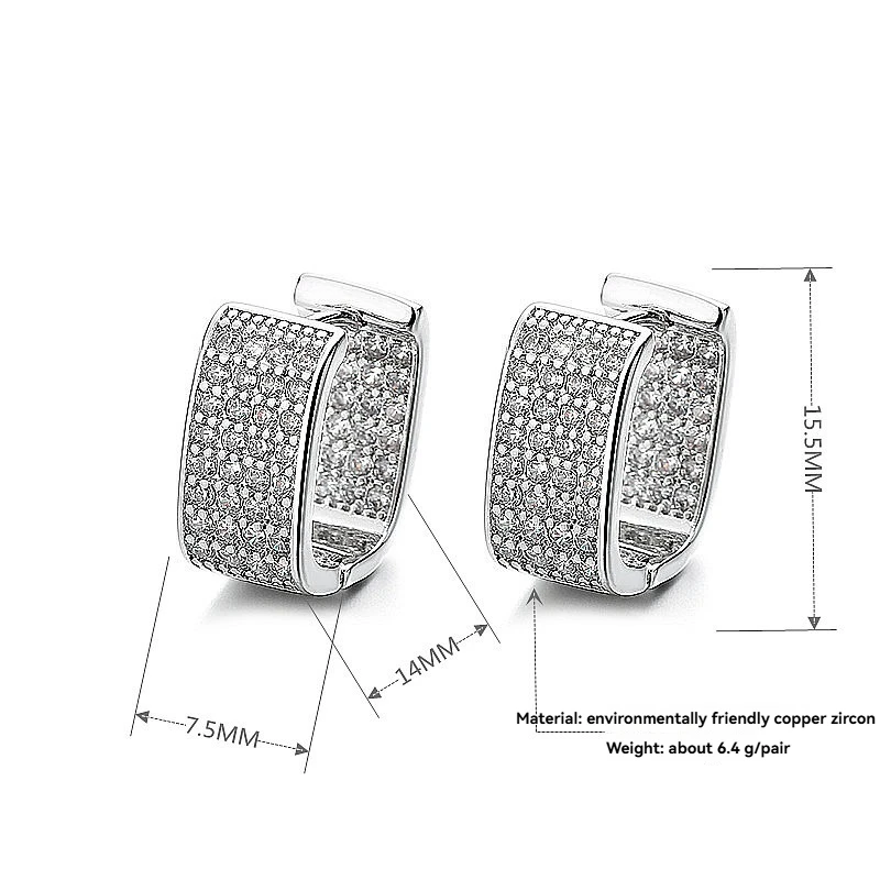 Fashionable Brass Double-Sided Zircon Hoop Earrings Punk Luxury Designer Jewelry for Women