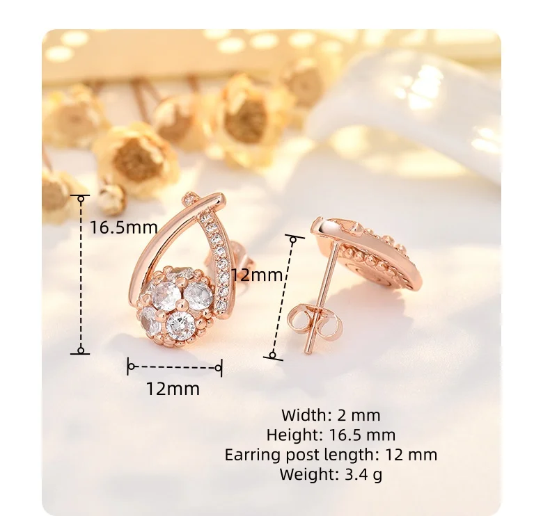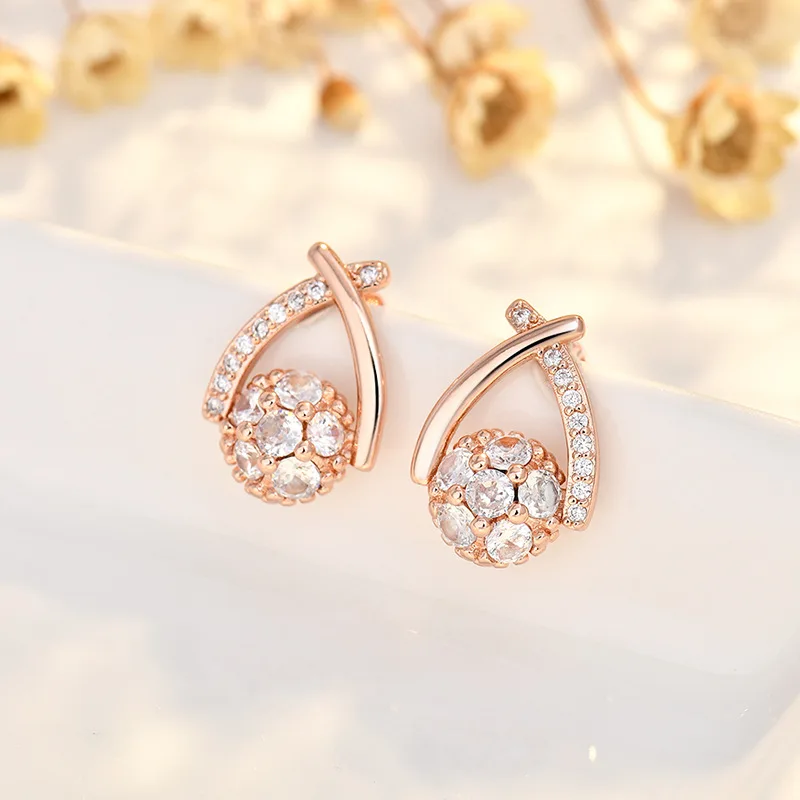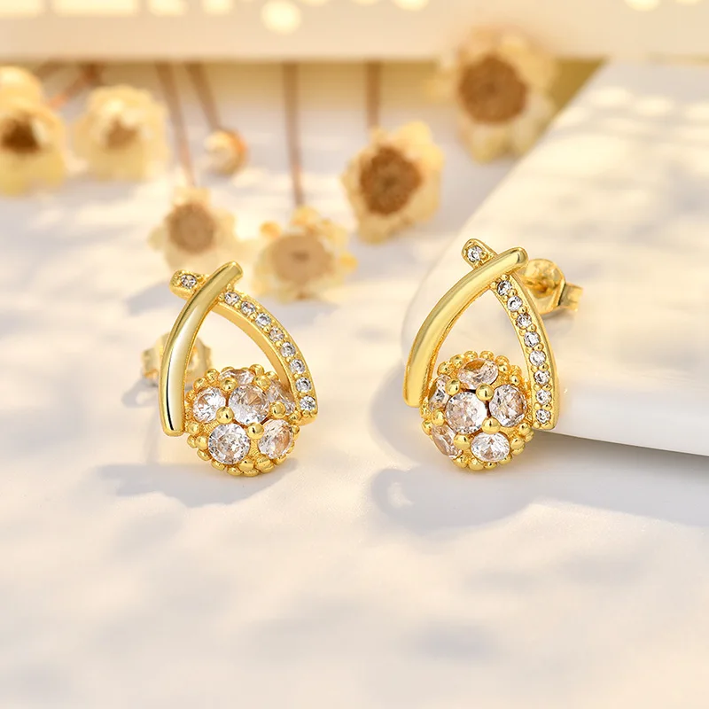Exquisitely Crafted Stainless Steel Needle Cross Waterdrop Stud Earrings with Zircon Trendy Fashion Jewelry for Women