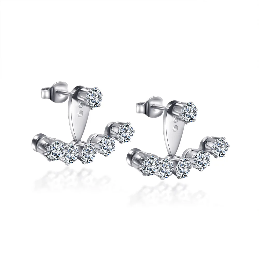 Stainless Steel Round Claw Zircon Earrings, Simple Women's 18K Gold-Plated Earrings