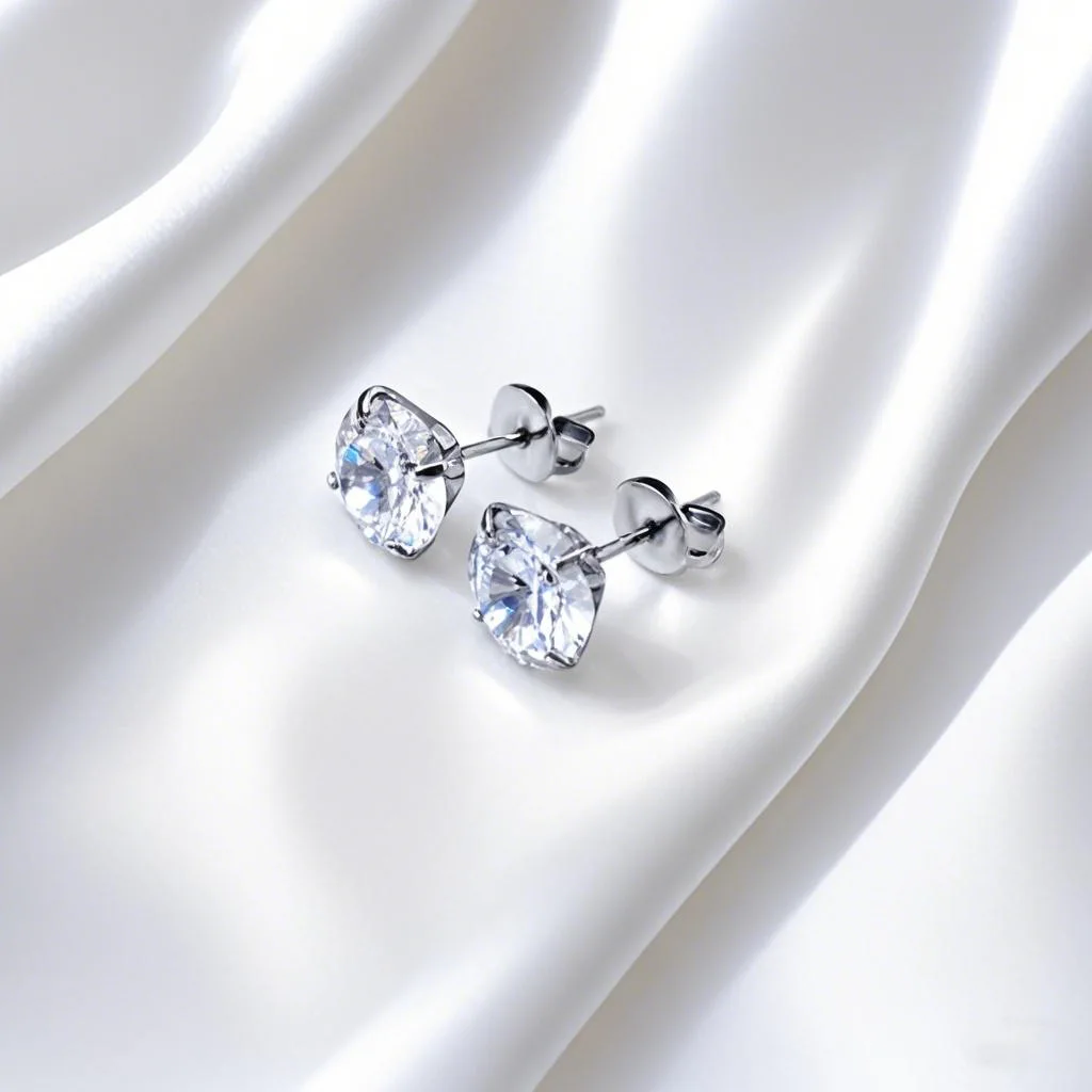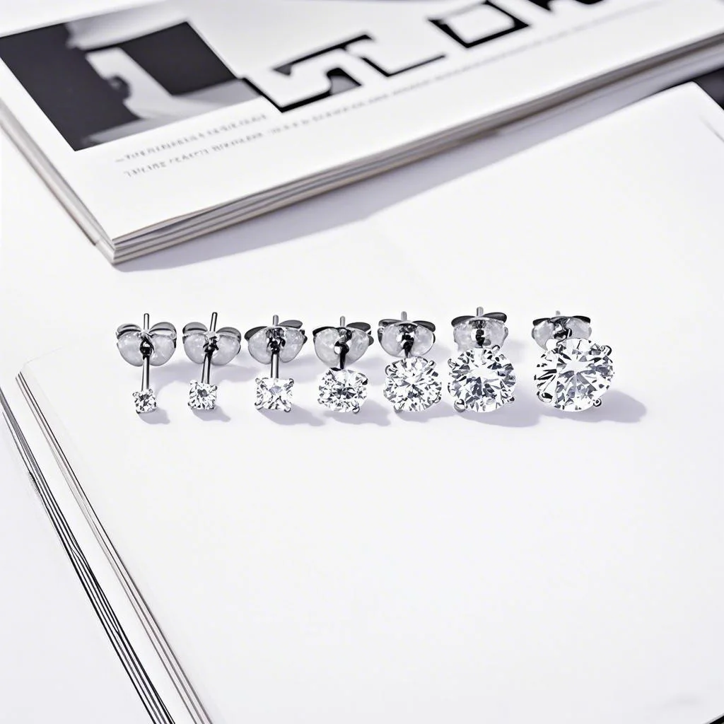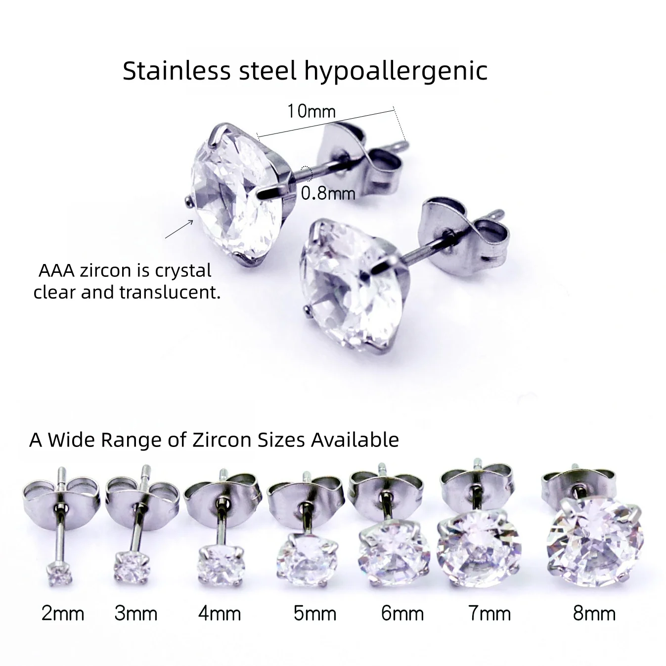 New Butterfly Clasp Four Prong Zircon Stud Earrings Trendy Stainless Steel Jewelry