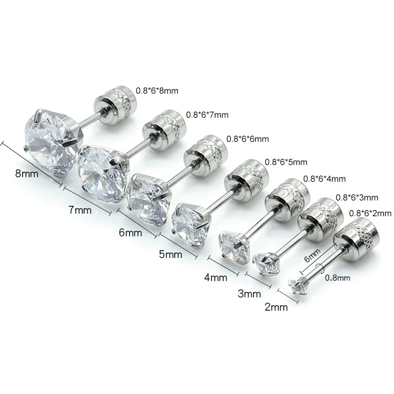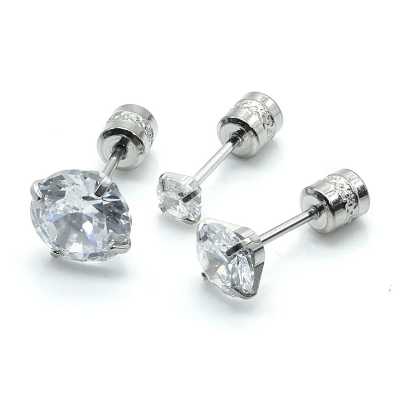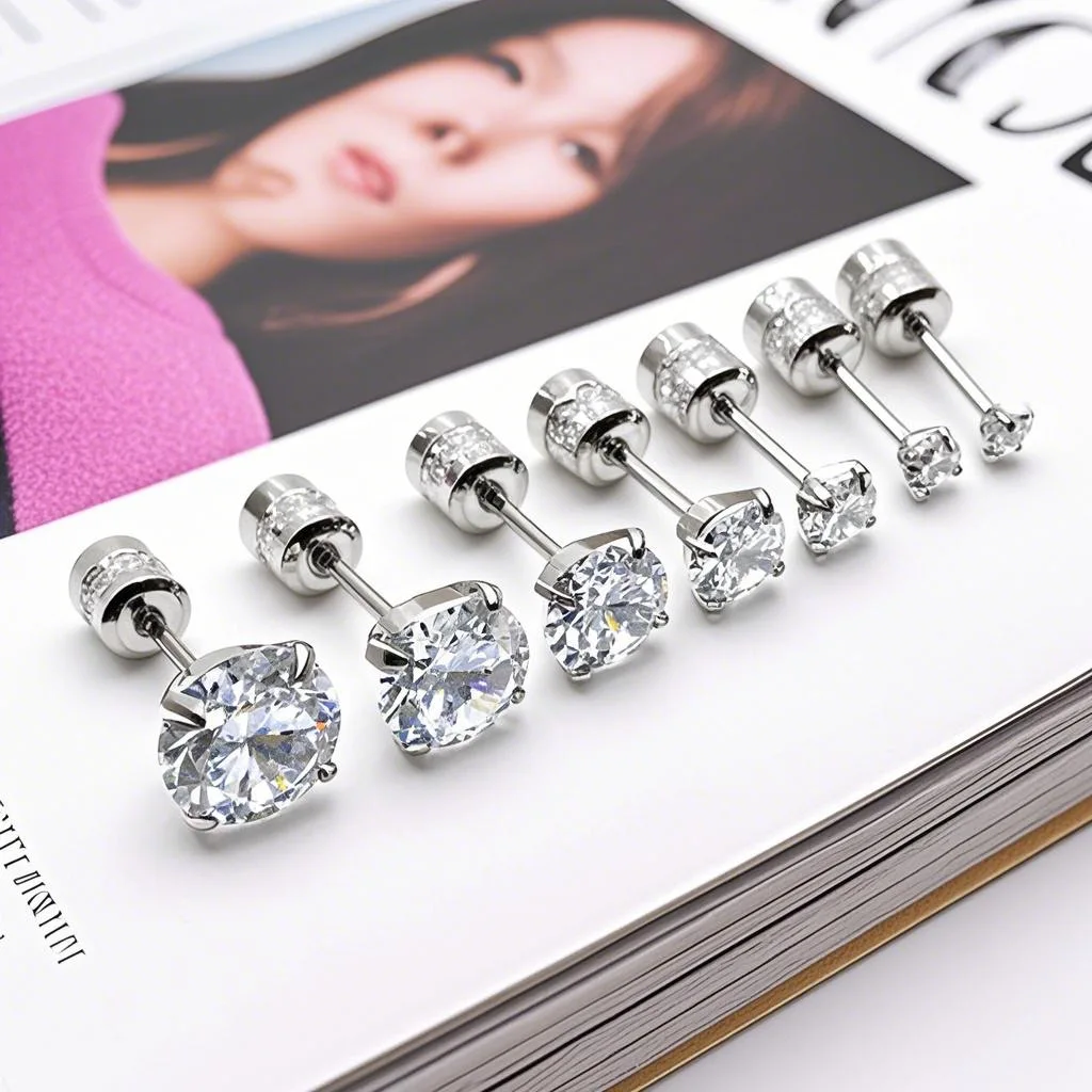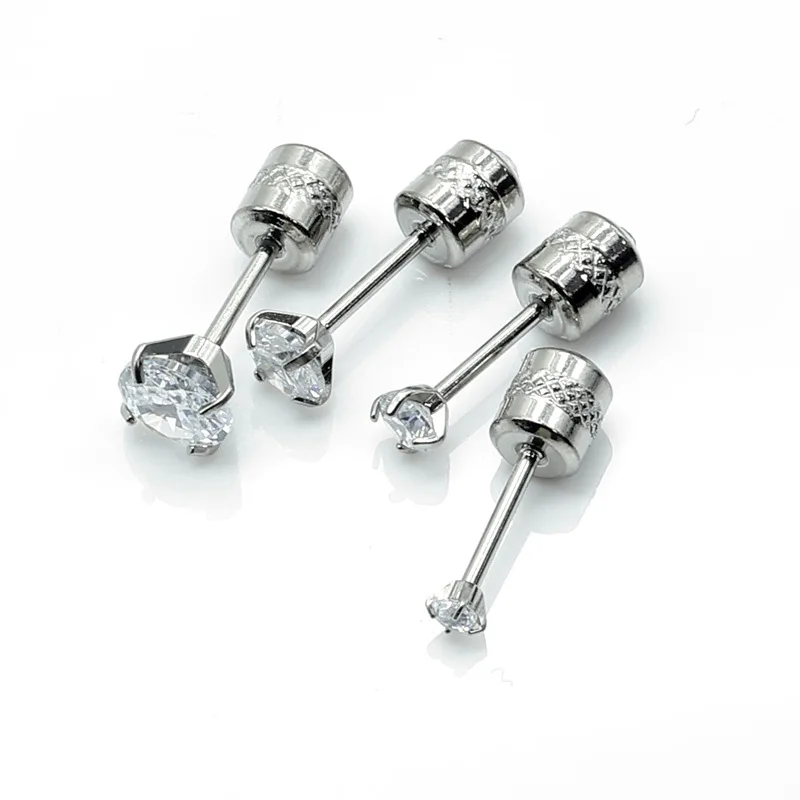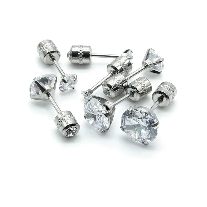 Fashion Four-Claw Zircon Gold-Plated Unisex Earrings In-Stock Stainless Steel Stud Simple Single Small Ball Cartilage Earrings