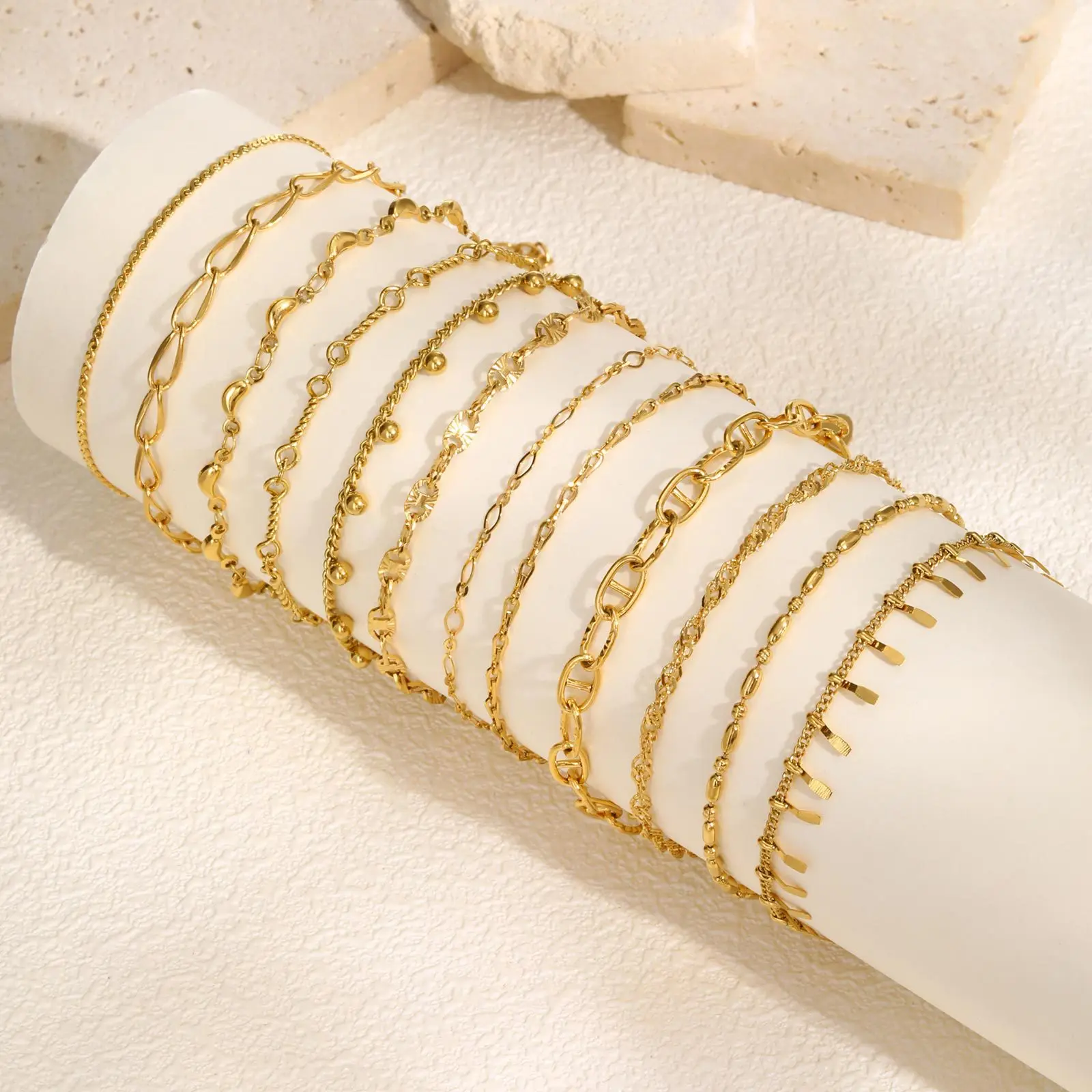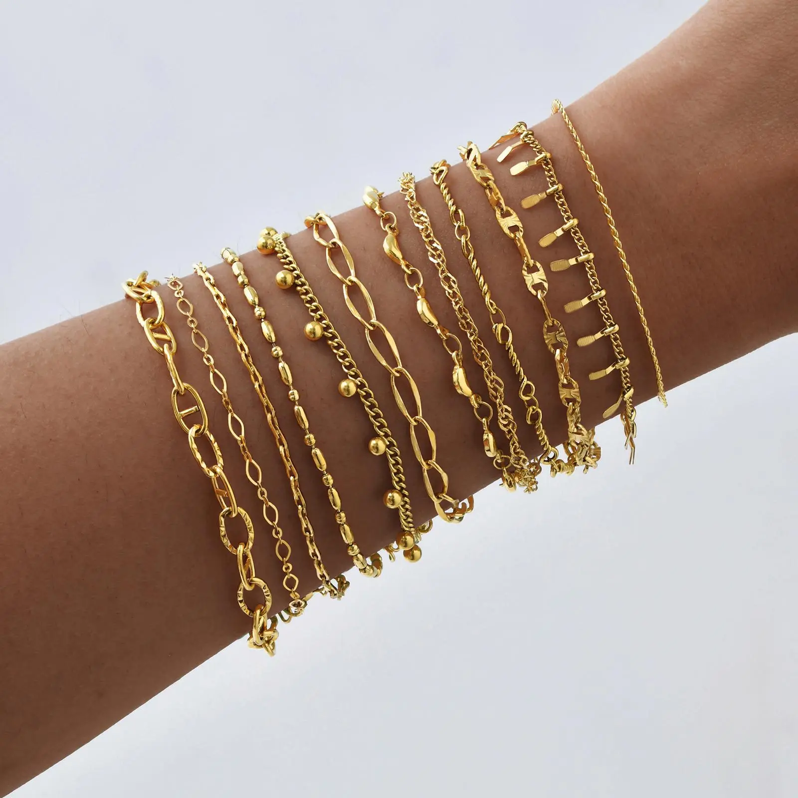 Women's Dainty Stainless Steel Gold Plated Stackable Cuban Link Paperclip Chain Bracelet Set Trendy Jewelry