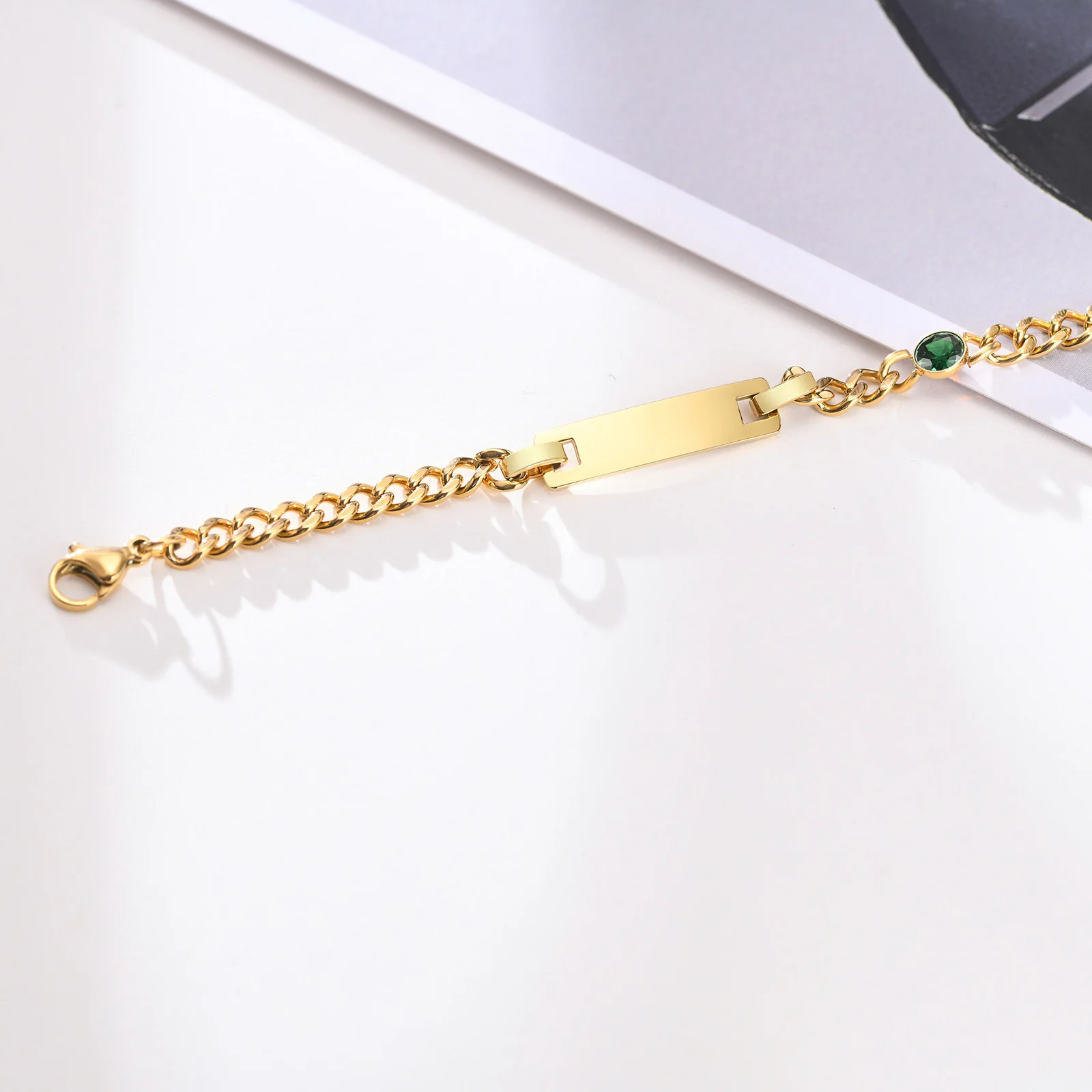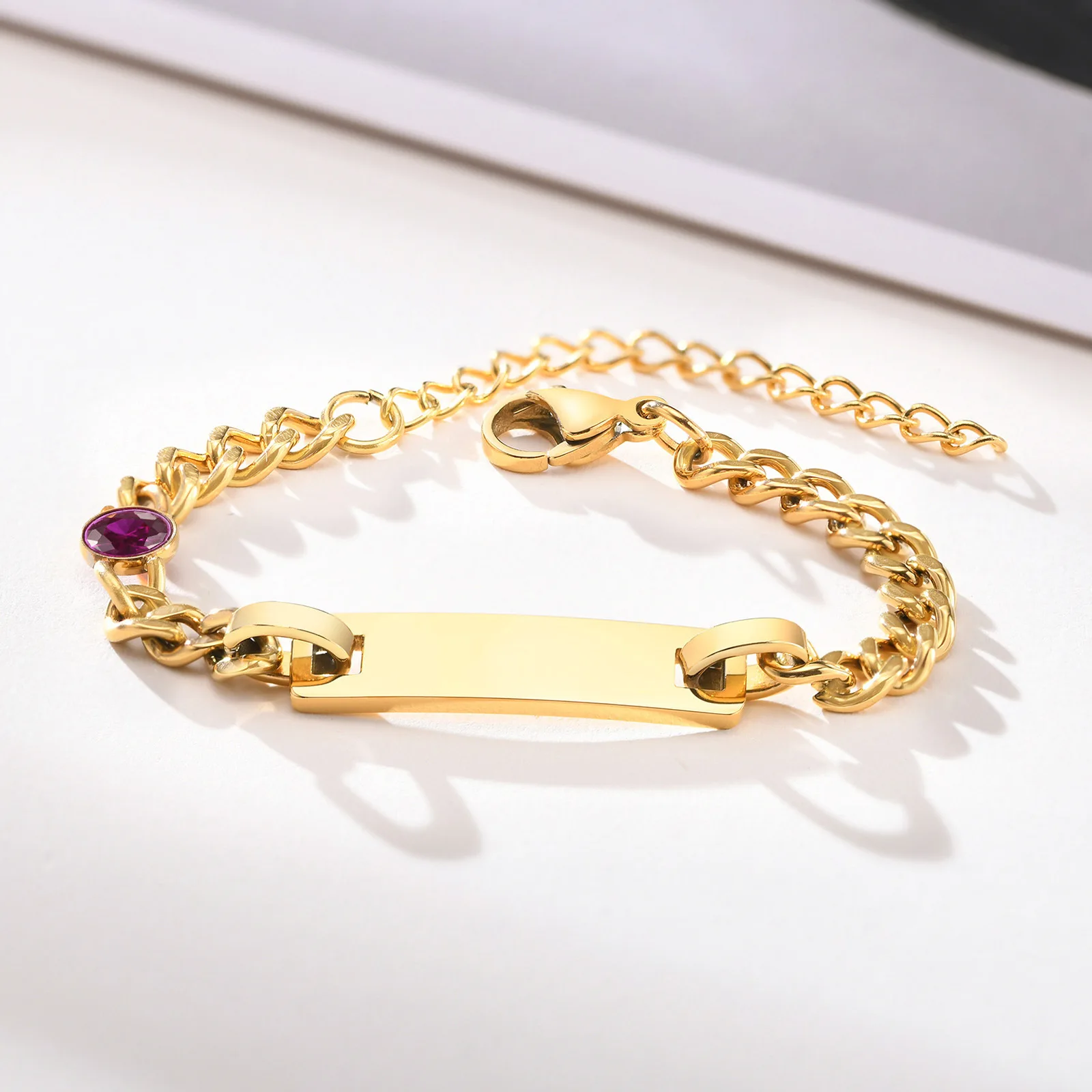 Customized Birthstone Beaded Bracelet Gold-Plated Stainless Steel Personalized Name Women's Trendy Anniversary Gift Nickel-Free