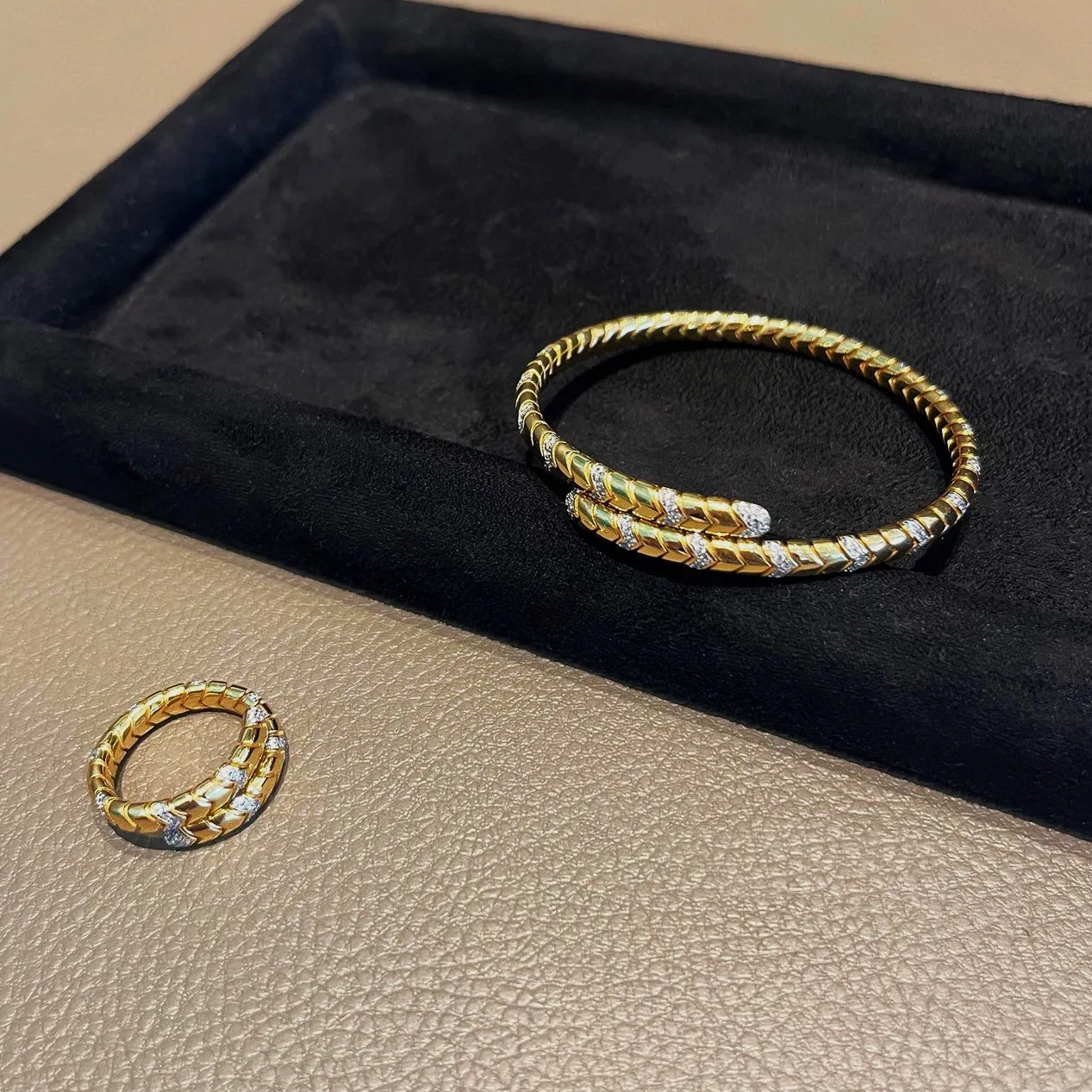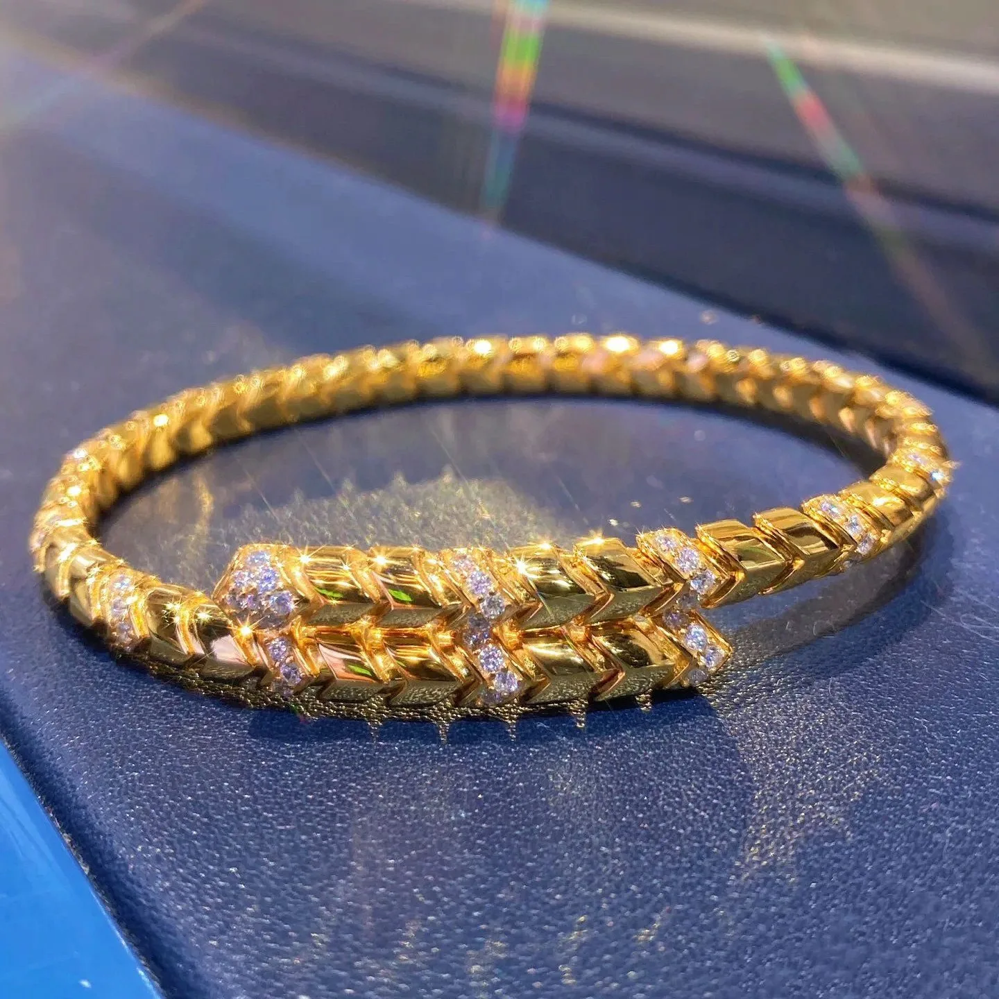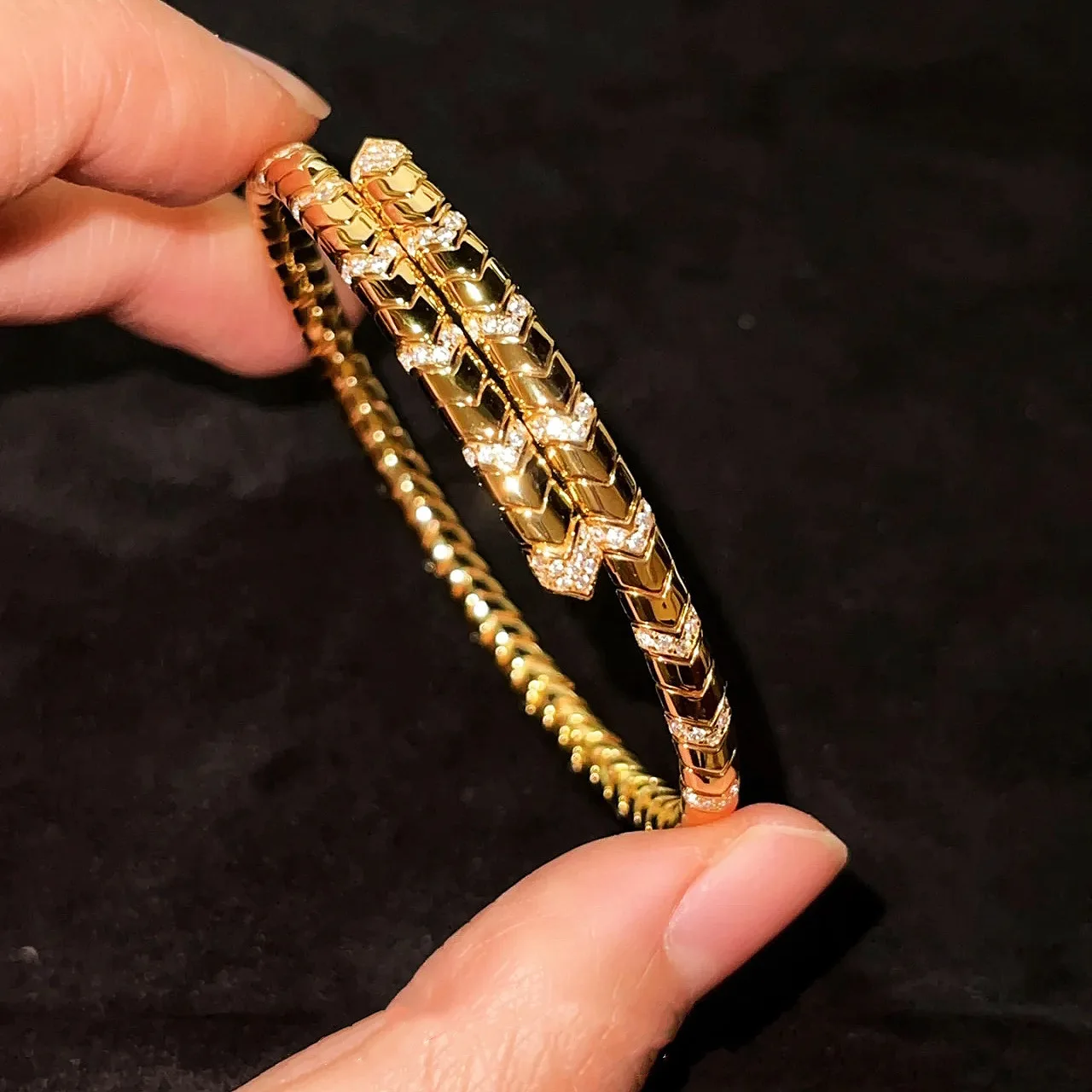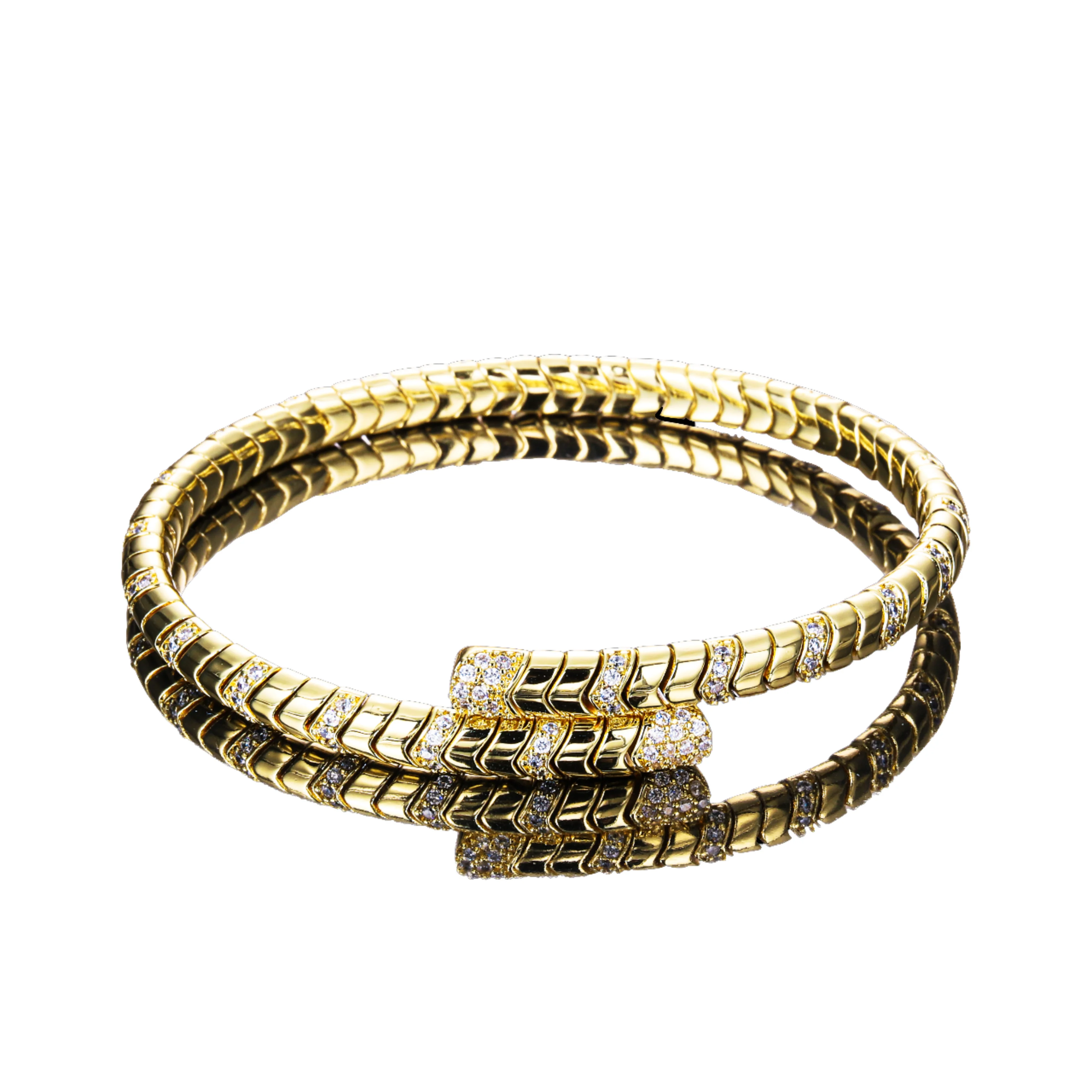 14K Gold Plated Brass Women's Party Wear Adjustable Snake Bangle Bracelets Trendy Round Brilliant Cut Cubic Zircon Claw Setting