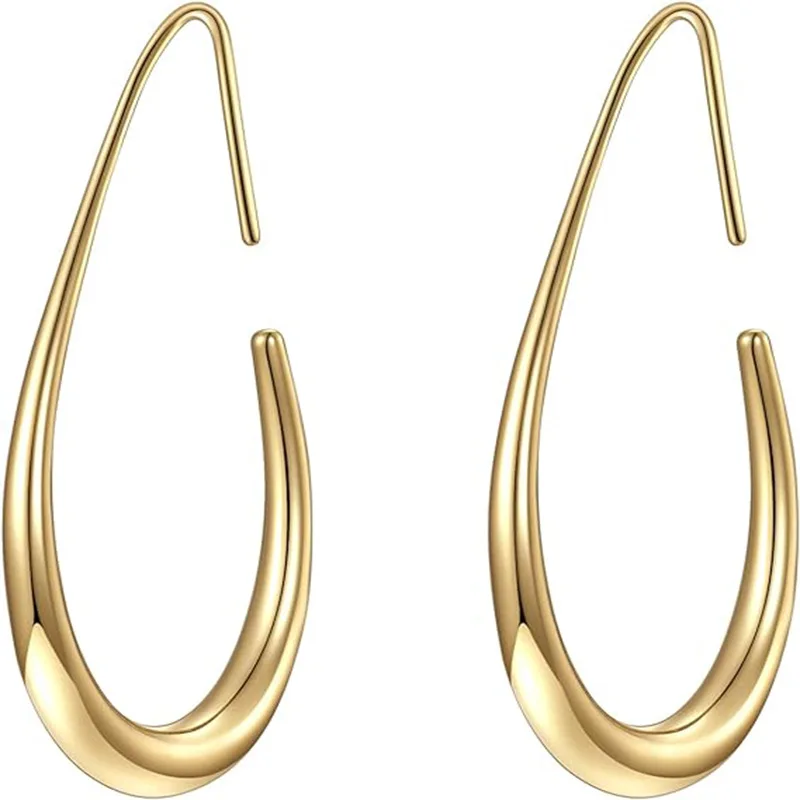 Lightweight Trendy Teardrop Drop Earrings for Unisex-14K Gold Plated Large Oval Party Earrings