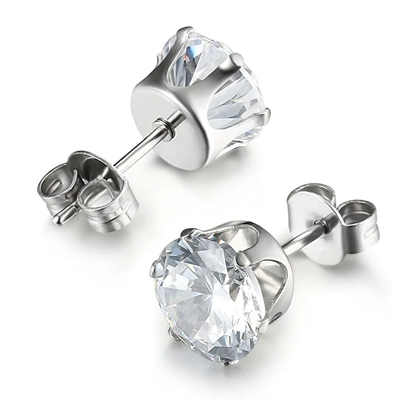 Trendy Stainless Steel Cubic Zirconia Princess-Cut Solitaire Stud Earrings for Women and Men Butterfly Push-Back