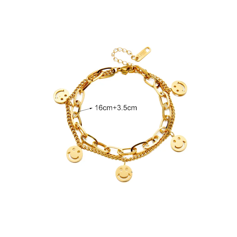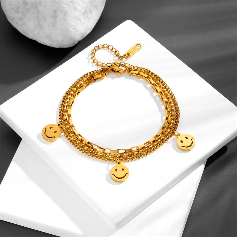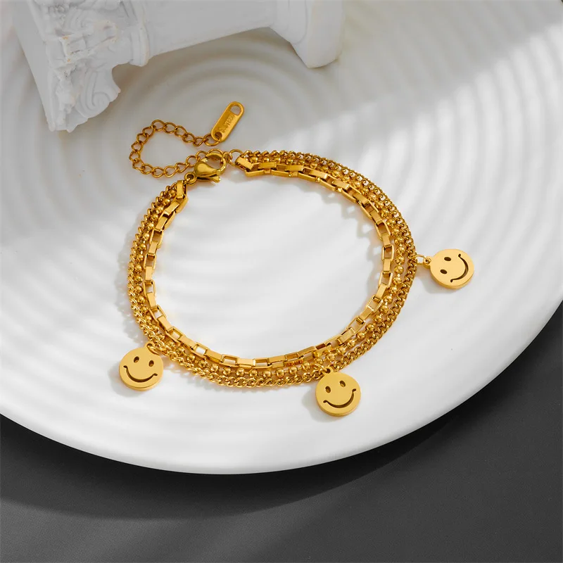 Mix Match Layering Gold Plated Stainless Steel Bracelet with for Face Pendant Minimalist Trendy Anniversary Fashion Jewelry