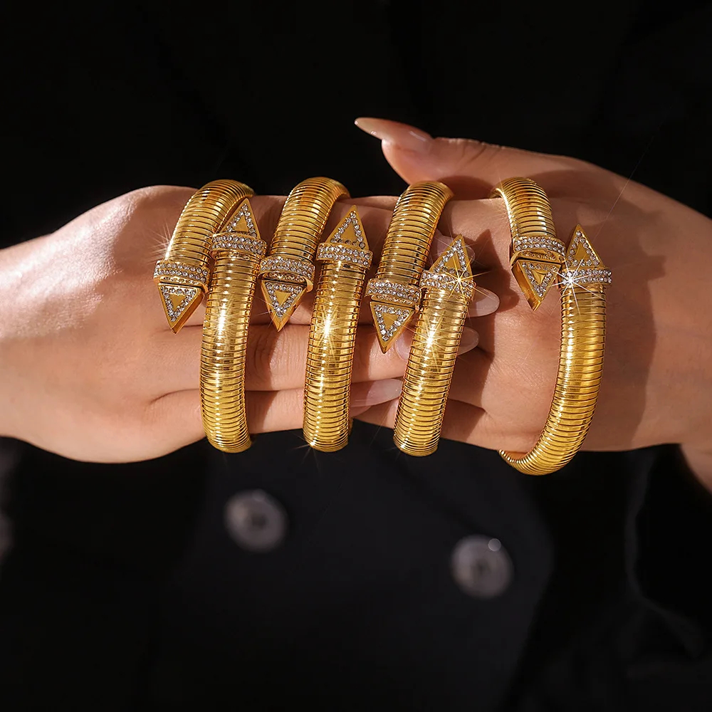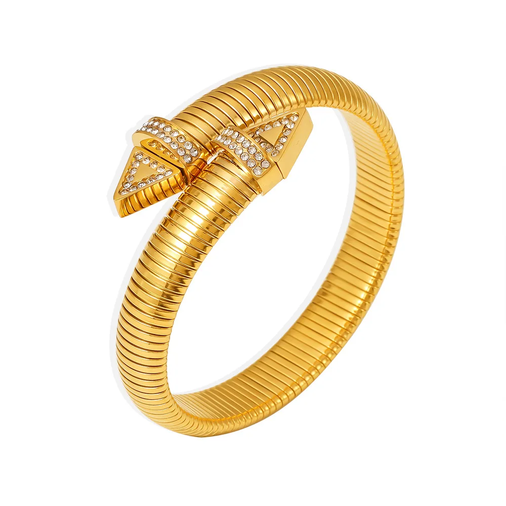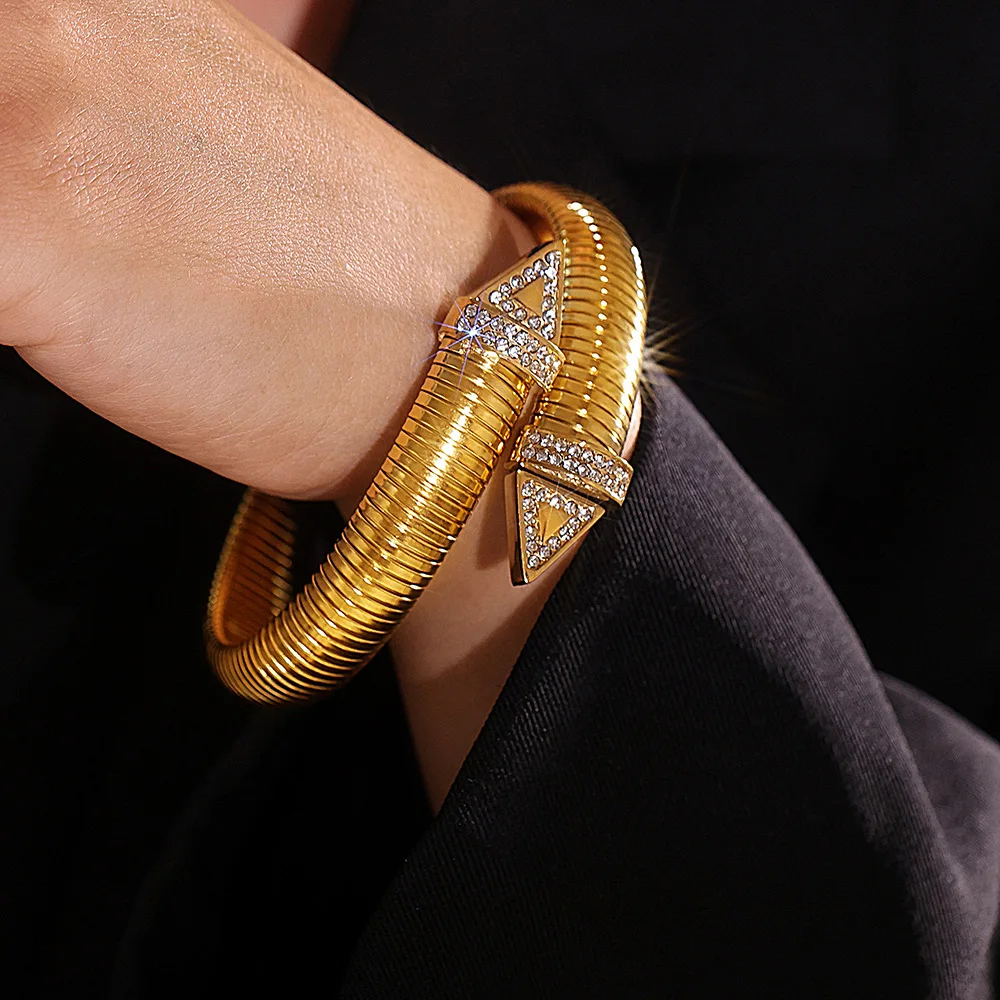 Women's Trendy Stainless Steel Elastic Chunky Rhinestone Bracelet Waterproof Hand Fashion Jewelry Accessories