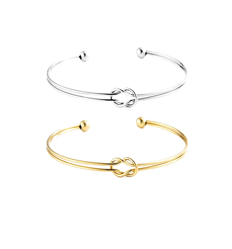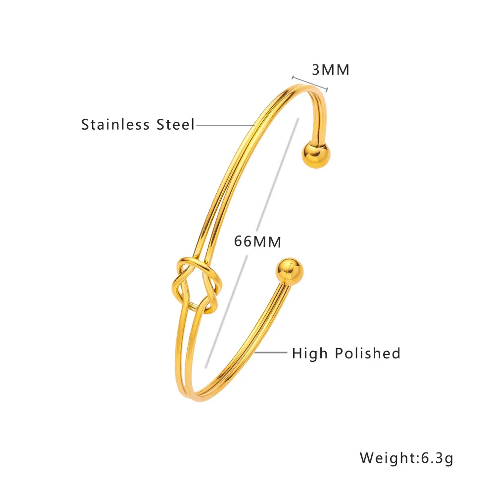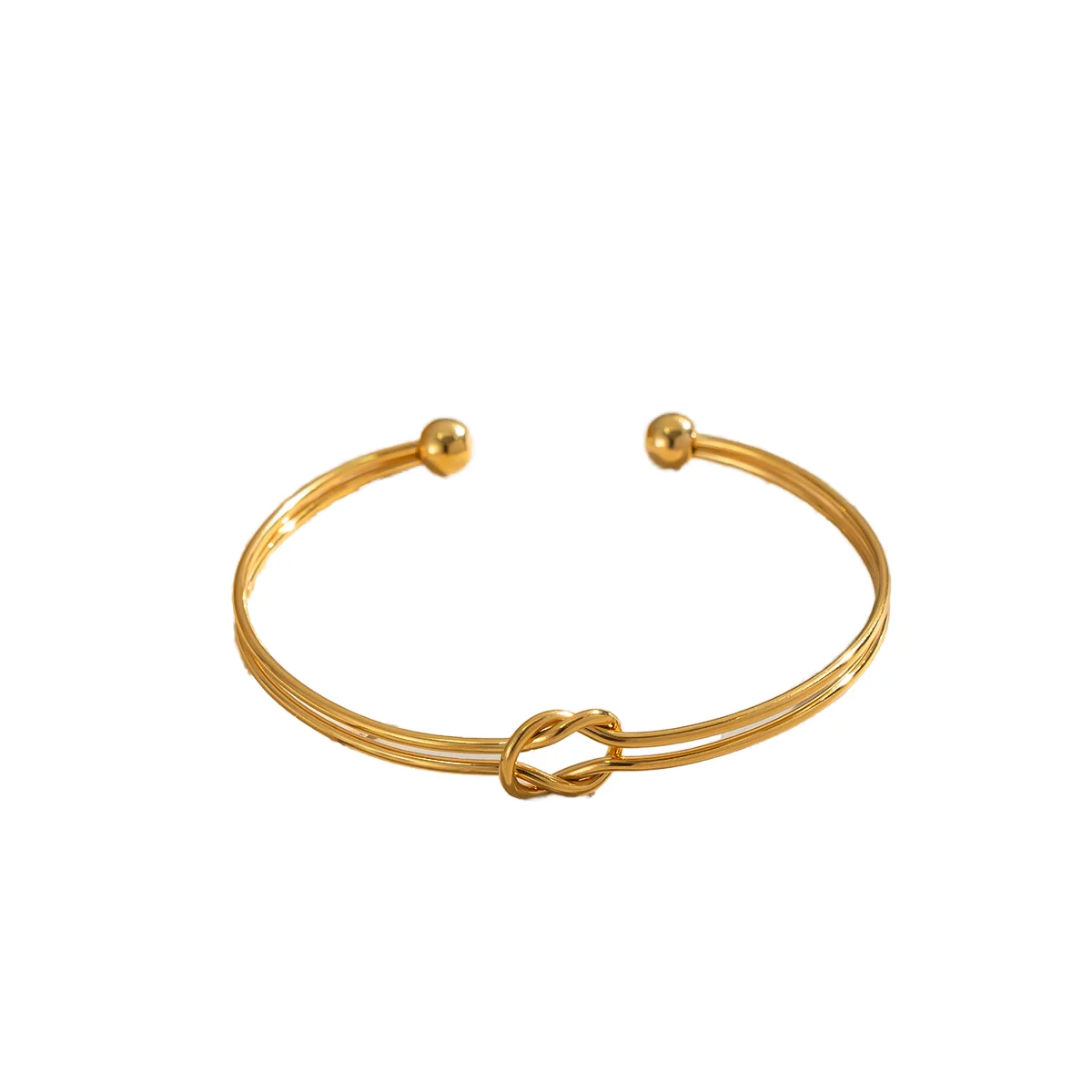 Minimalist Stainless Steel & 18K Gold Plated Waterproof Knot Double-Layer Hollow Thin Open Bracelet Fashionable Bangle