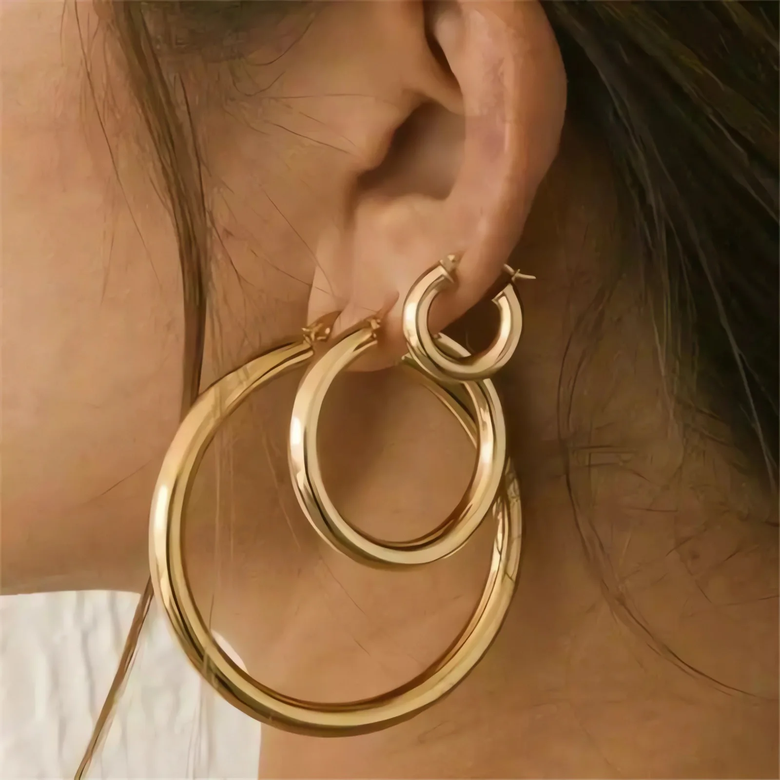 JINYAN Women Classic Stainless Steel Hoop Earrings Hypoallergenic Everyday Jewelry