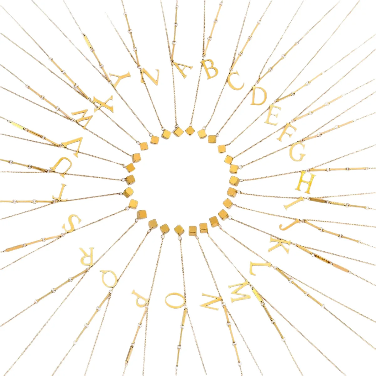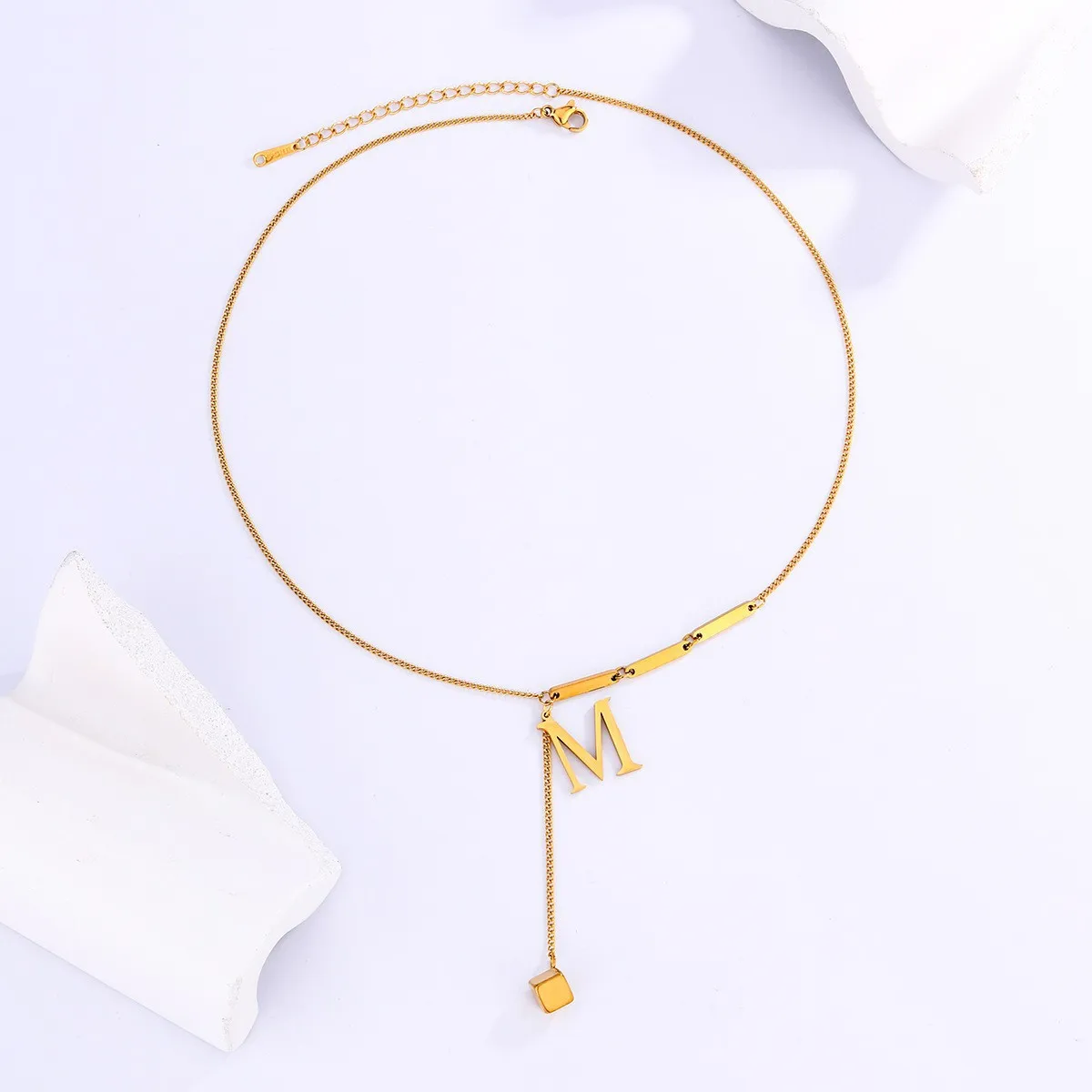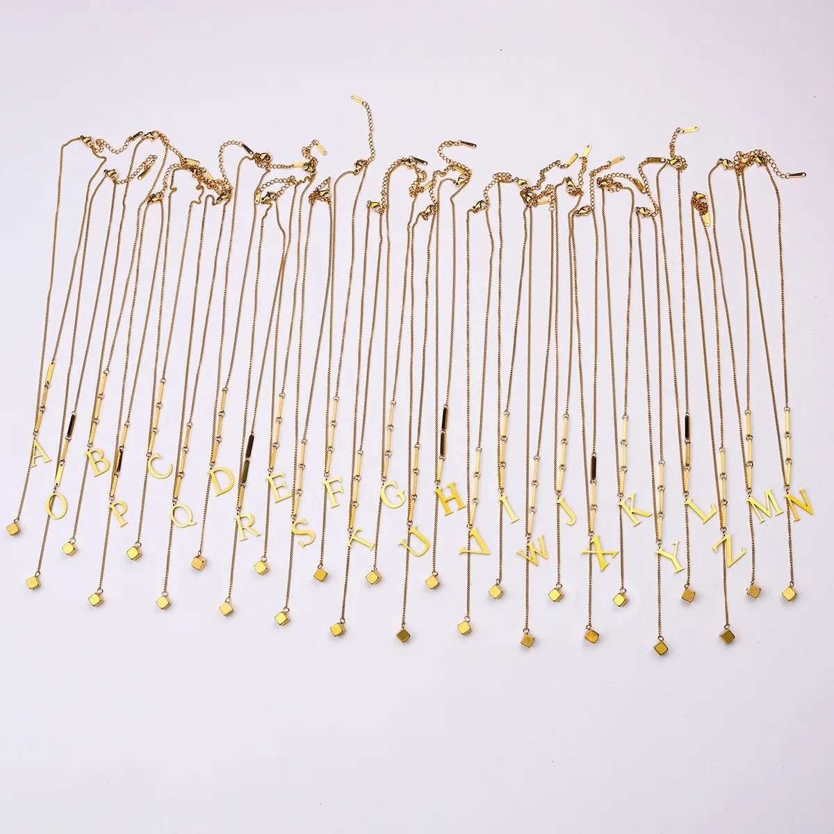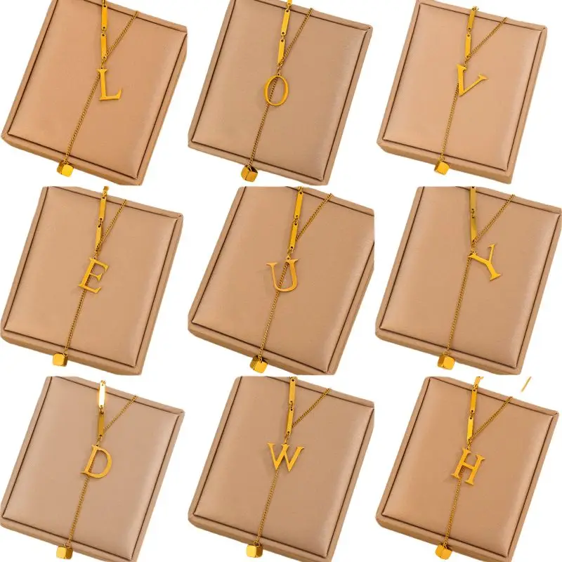 Unisex Stainless Steel 18K Gold Plated Diamond Personalized Name Letter Necklace for Men Women Trendy Durable Bamboo Chain
