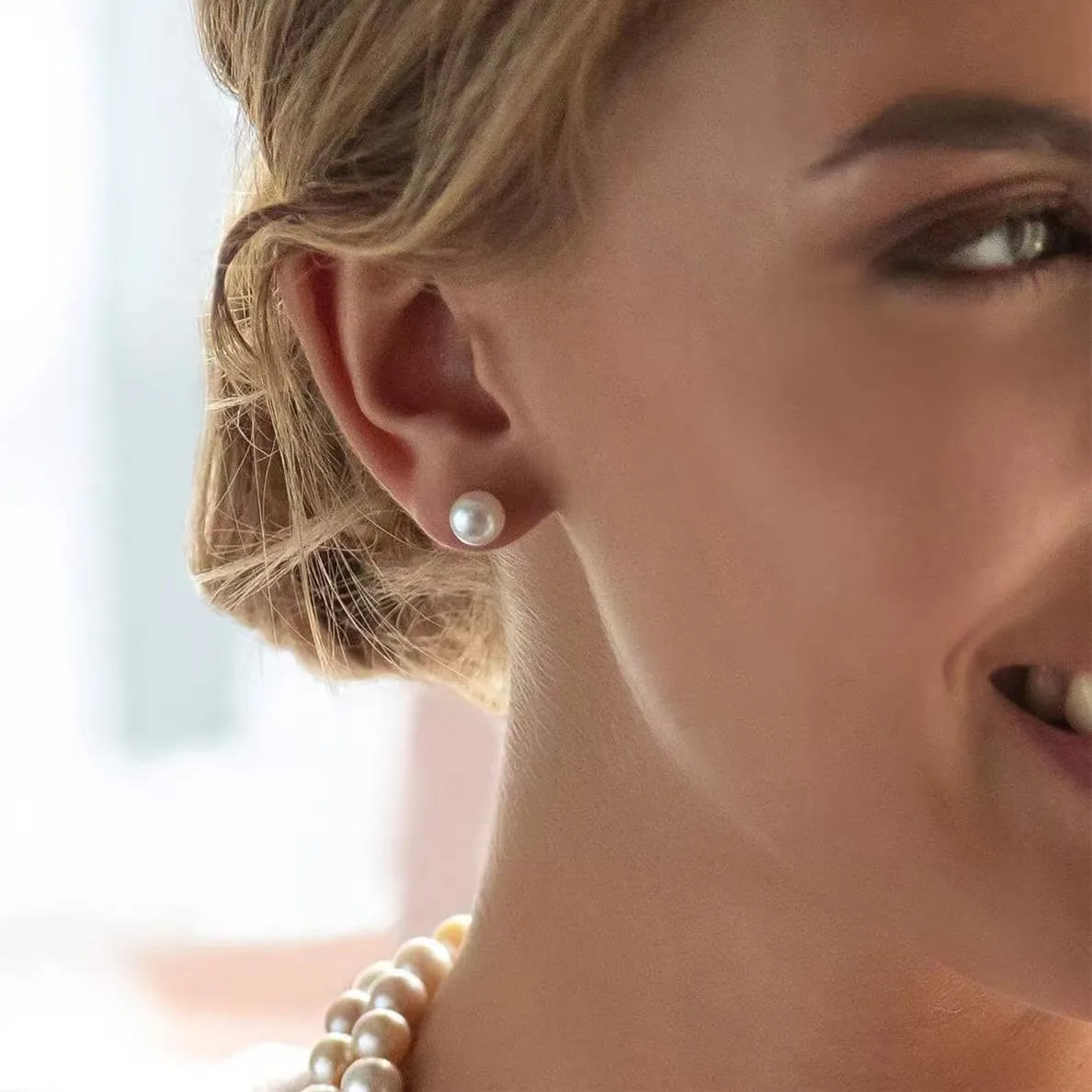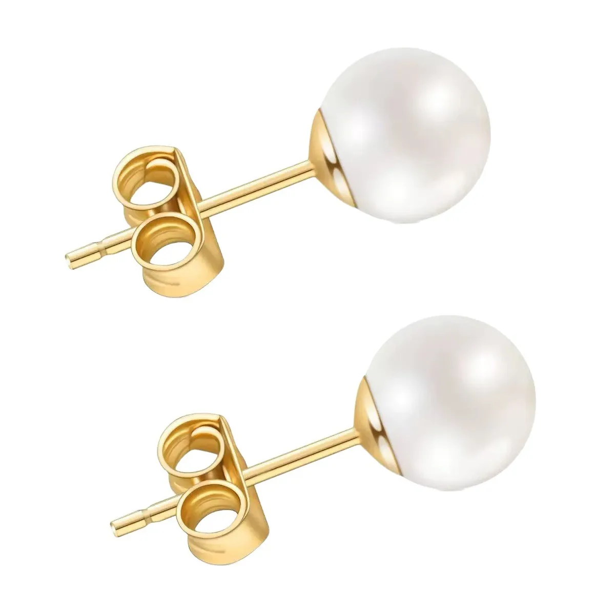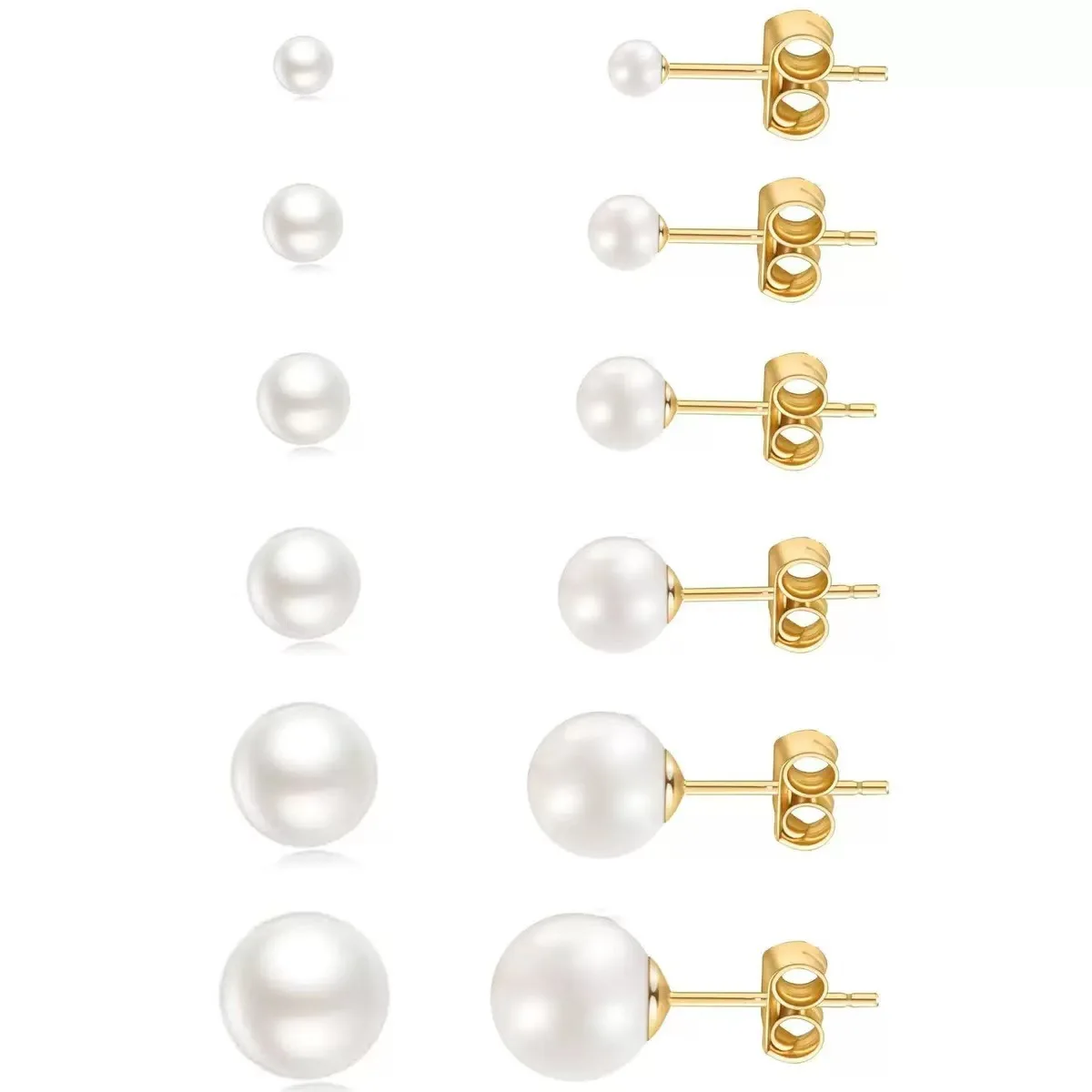 14K Gold Filled Polished Small CZ Pearl Ball Stud Earrings Set for Women Men 20G Surgical Steel Hypoallergenic Piercing Studs