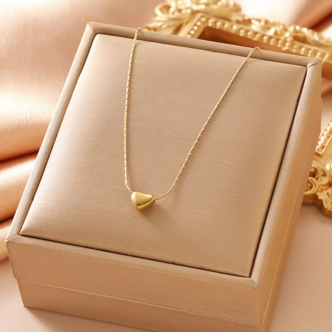 Minimalist Heart Necklace 18K Gold Plated Tone Dainty Pendant Necklace for Women Trendy Everyday Wear Fashion Jewelry Gift