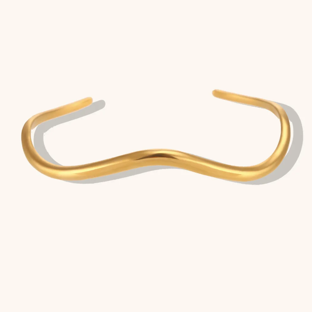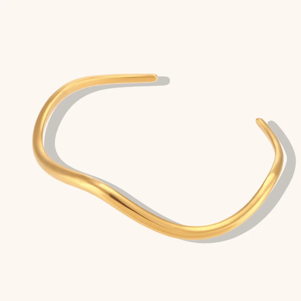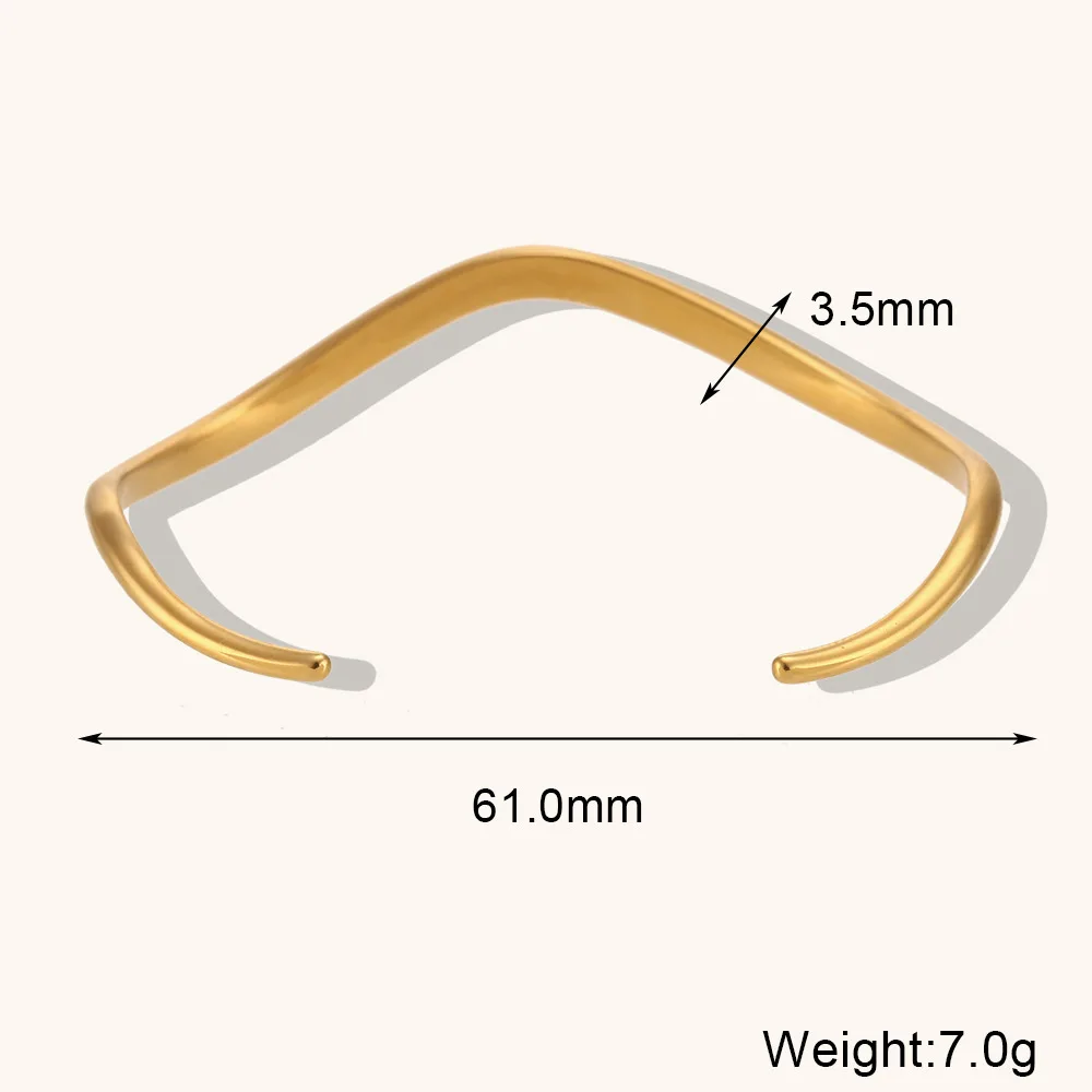 Irregular Wave-shaped Open Charm Bracelet Simple Stainless Steel with 18K Gold Plating Trendy Unisex Jewelry