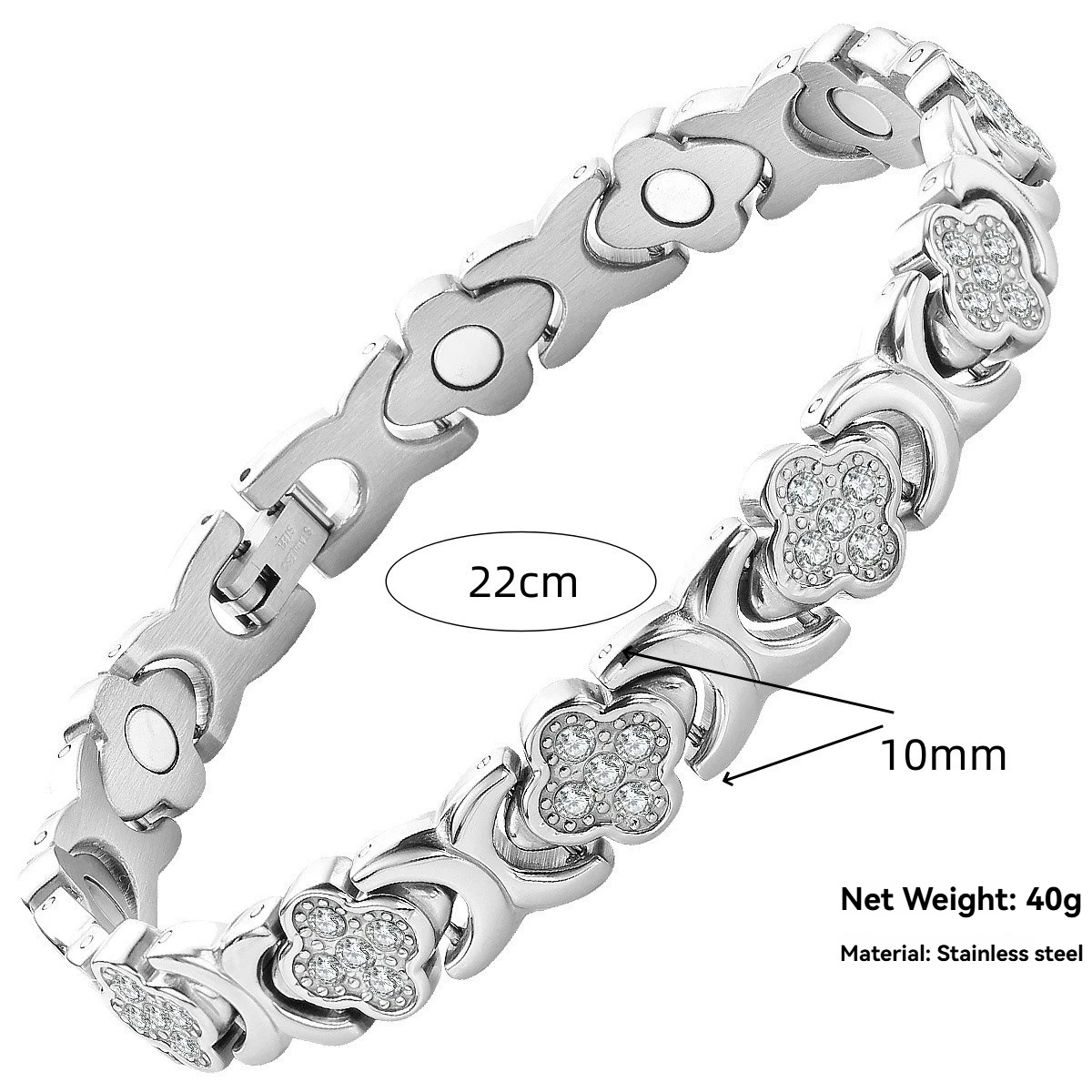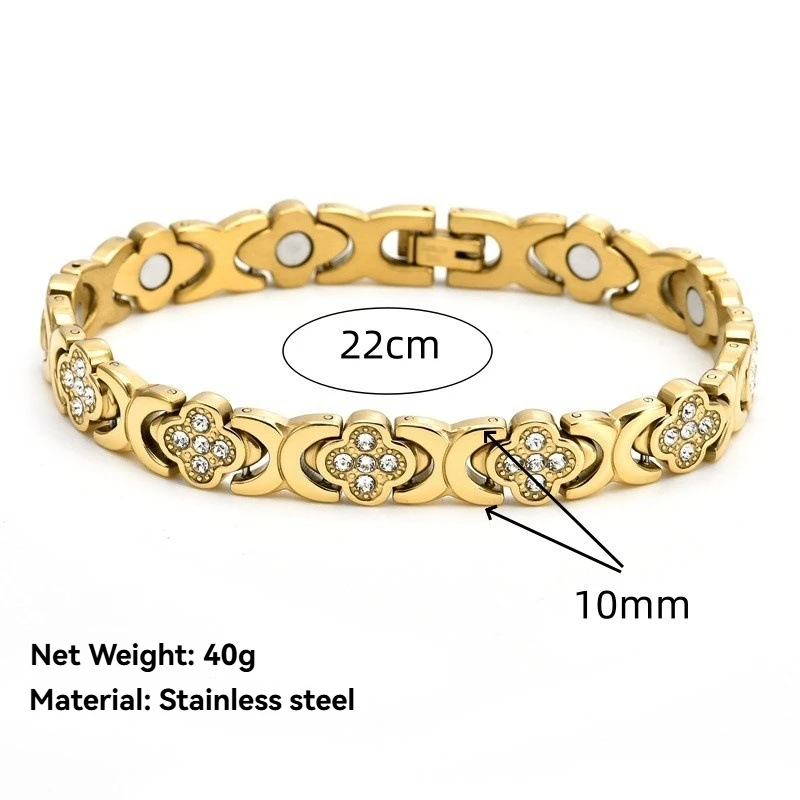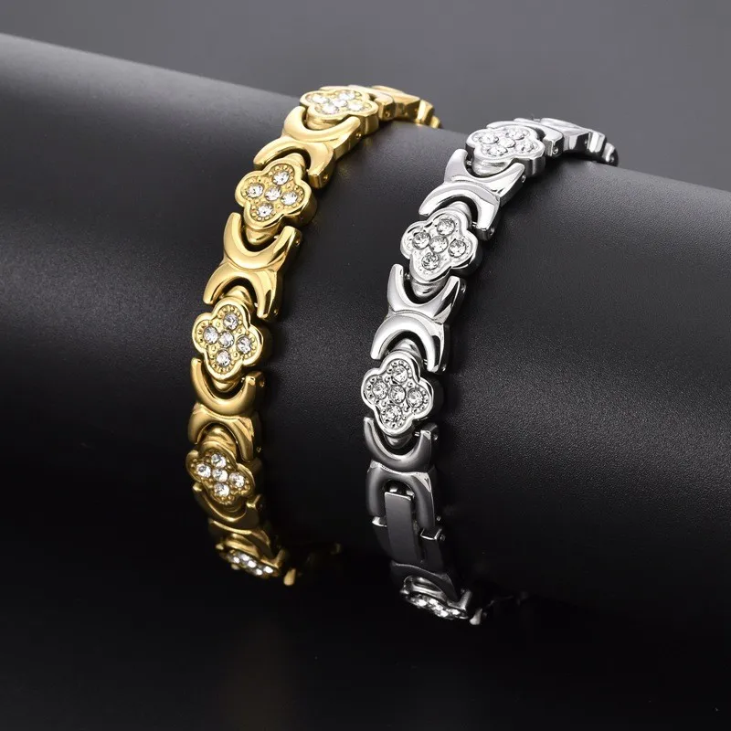 316 Stainless Steel Clover Flower Design Healthy Magnetic Bracelet for Men Women