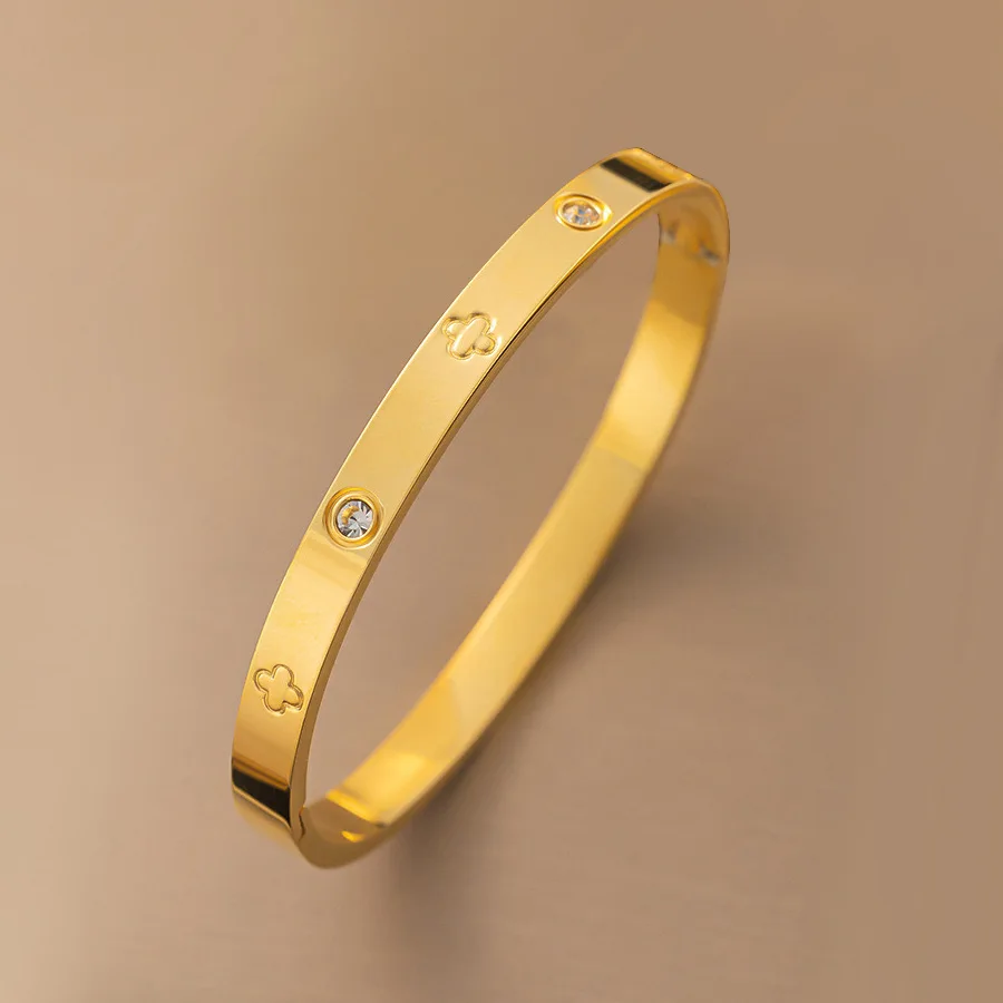 18K Gold Electroplated Stainless Steel Fashion Waterproof Jewelry Bangle High Quality Polished Designer