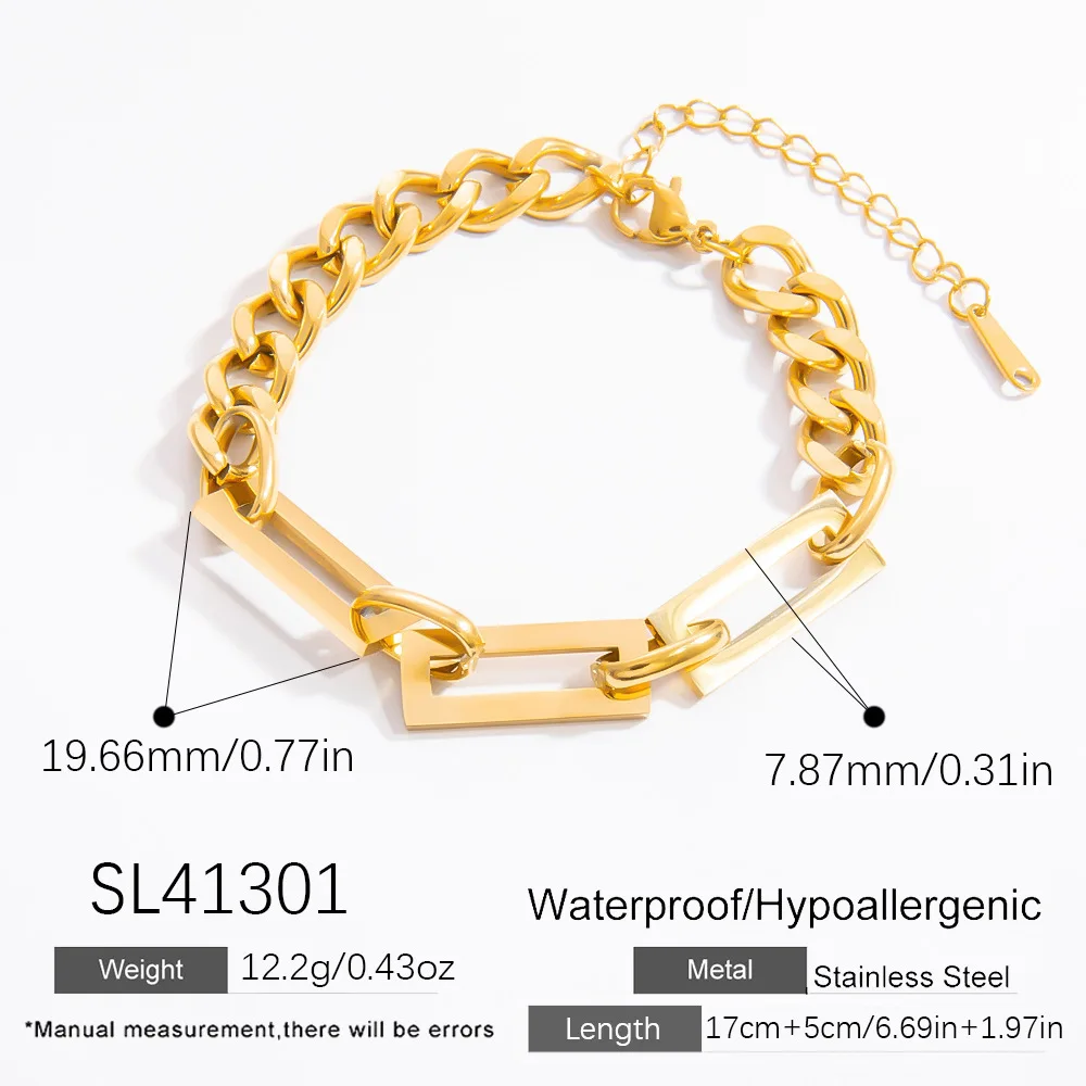 Unisex Punk Stainless Steel Miami Cuban Link Chain Necklace and Bracelet Set 2 Pcs/Set Gold Plated for Weddings