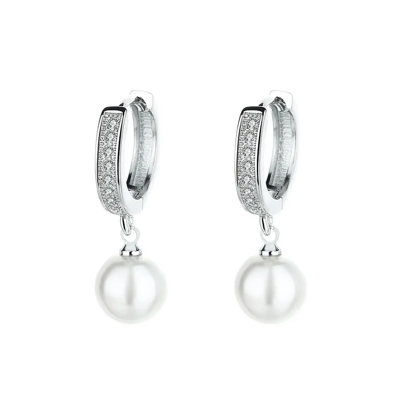 Fashionable Hypoallergenic Stud Earrings 18K Gold-Plated Round White Faux Pearl Jewelry IGI Certified for Women's Anniversary