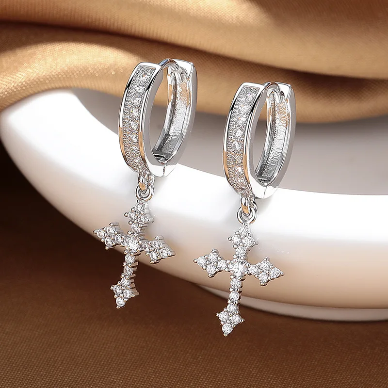 Fashionable Stainless Steel Cross Earrings for Women Elegantly Stylish Zircon Studs Trendy Clip-On Jewelry