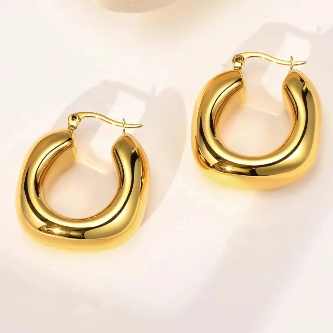 Fashion Hoop Earrings Stainless Steel Hollow Crescent Ear Cuffs 18k Real Gold Punk Style