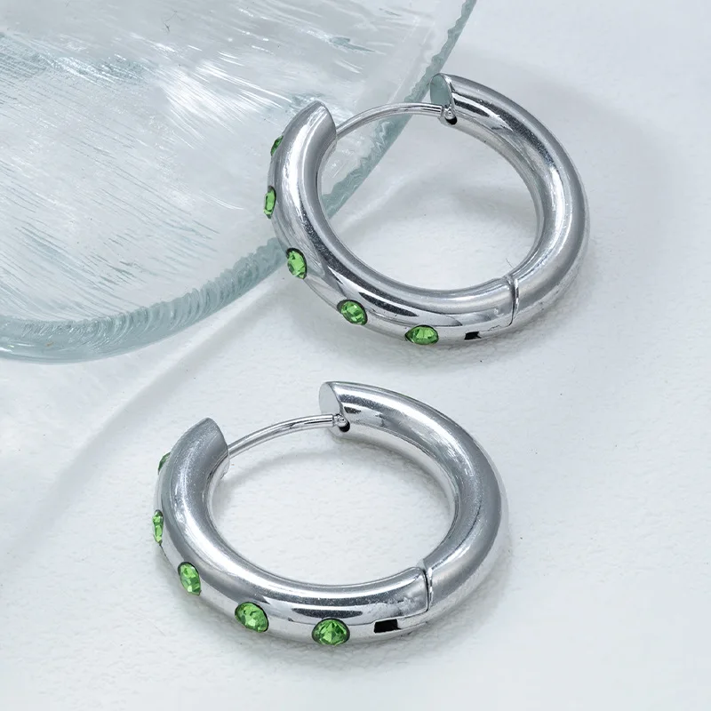 Trendy Hoop Earrings in 18K Gold-Plated Stainless Steel with Red Pink Green or White Zircon Inlays