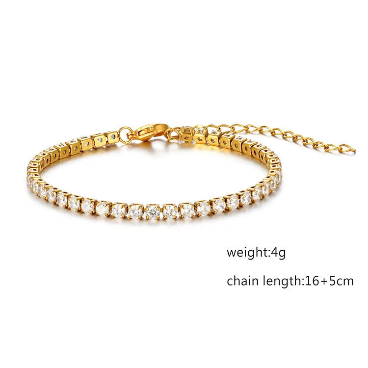 8K Gold Stainless Steel Trendy Zircon Chain & Link Bracelet for Women High-End and Versatile