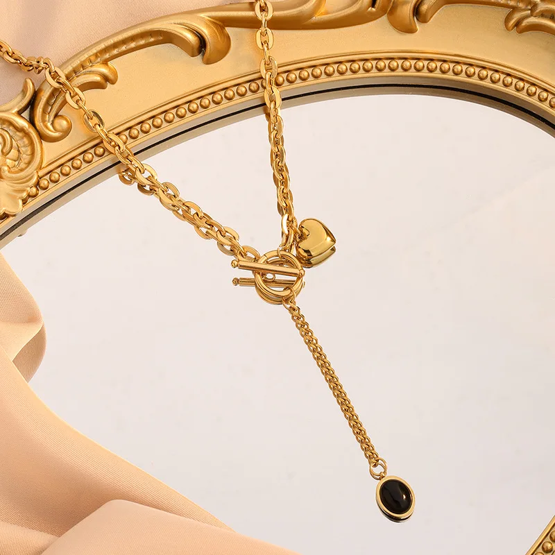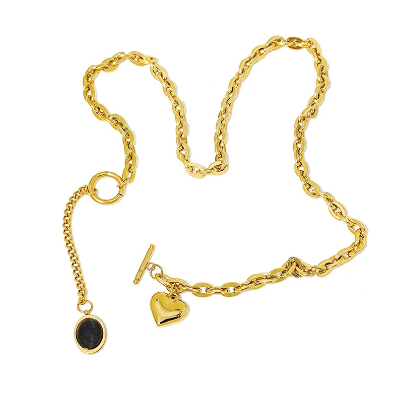 18K Gold Plated Zinc Alloy Heart Stainless Steel Necklace with Snake Chain Trendy Pendant for Women