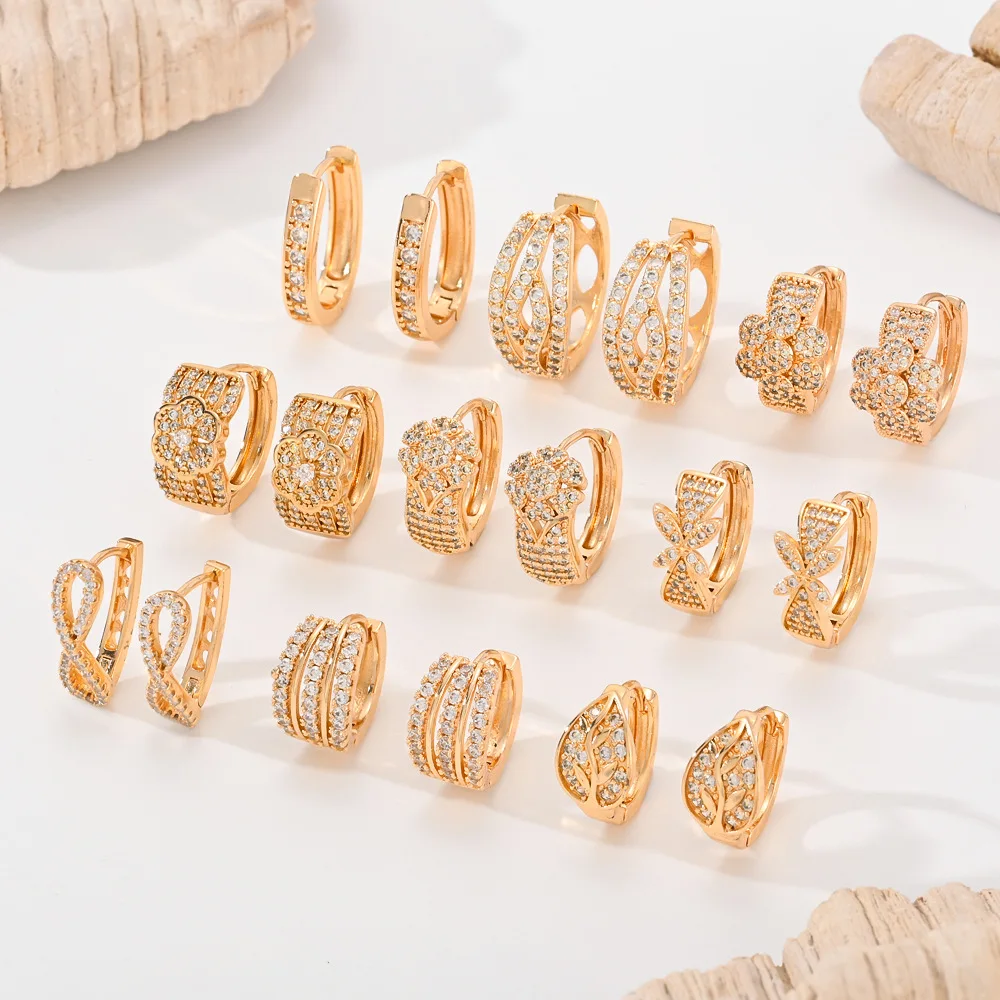 Champagne Gold Hoop Earrings Women European American Trendy Popular Exquisite Copper Alloy Gold-Plated Zircon Zirconia Earrings