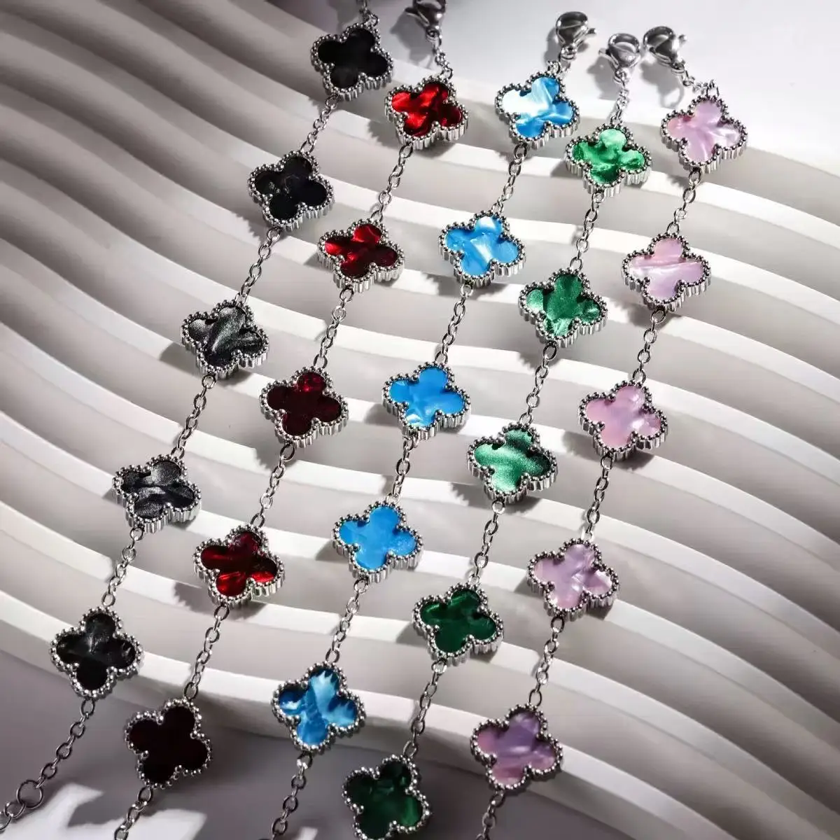High-Grade Four-Leaf Clover 13MM Double-Sided Natural Stone Shell Geometric Trendy Stainless Steel Bracelet Women Men