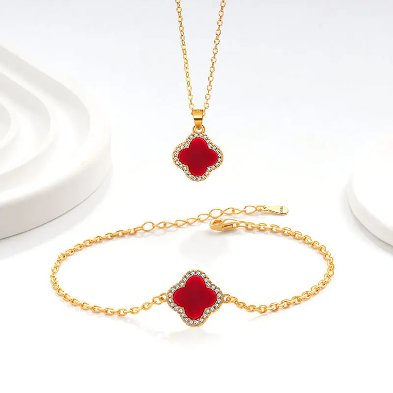 Lucky Jewelry Vintage Gold Plated S925 Silver Four Leaf Clover Bracelet Four Leaf Clover S925 Silver Bracelet Ladies