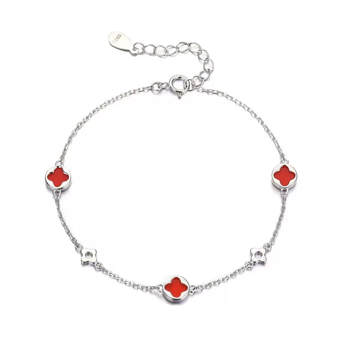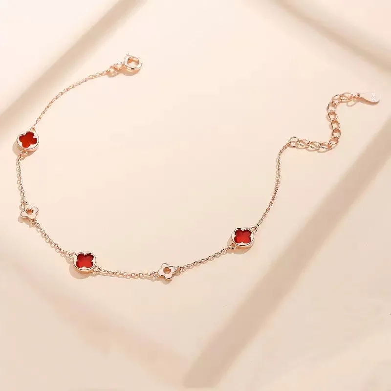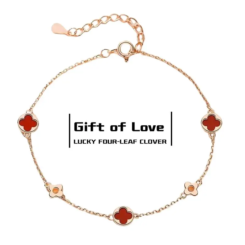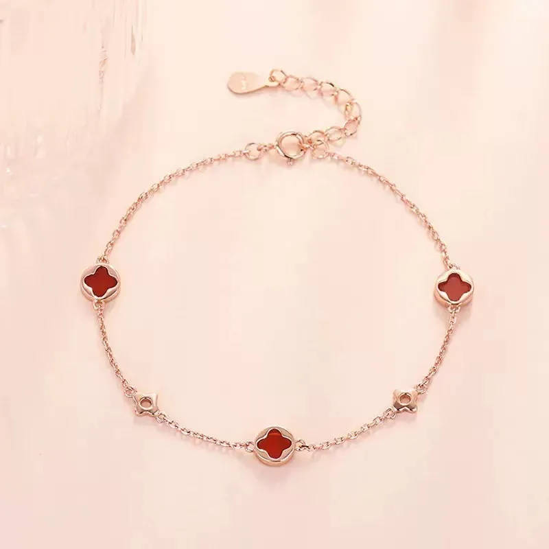 New Arrival Women's Fashion Stainless Steel Charm Bracelet Natural Stone Four-Leaf Clover Design Rose Gold Plated Bohemian Style
