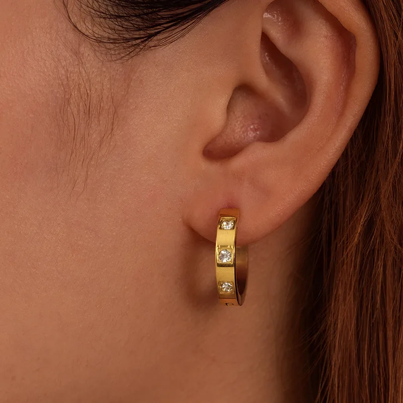 Personalized Simple Stainless Steel Gold Plated C Shape Circle Earrings Titanium Steel Rectangle Hoop Earrings Trendy