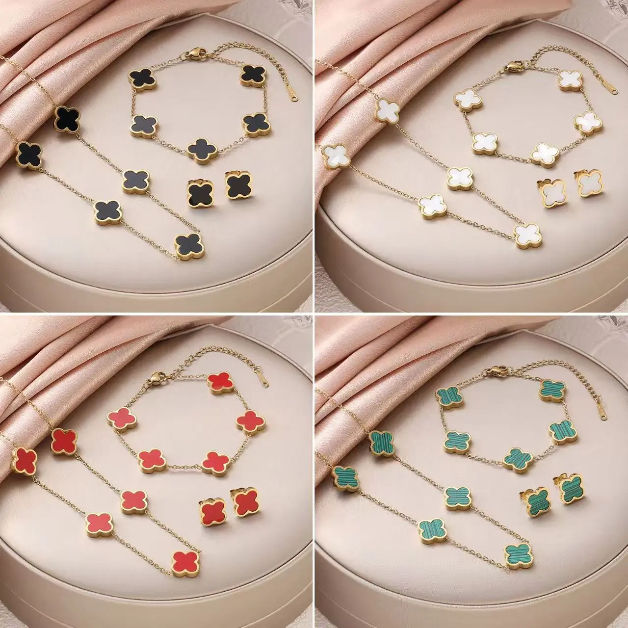Stainless Steel Gold Plated 18K Clover Chain & Link Bracelet 4 Leaf Non-Tarnish Waterproof for Women Men Factory Wholesale