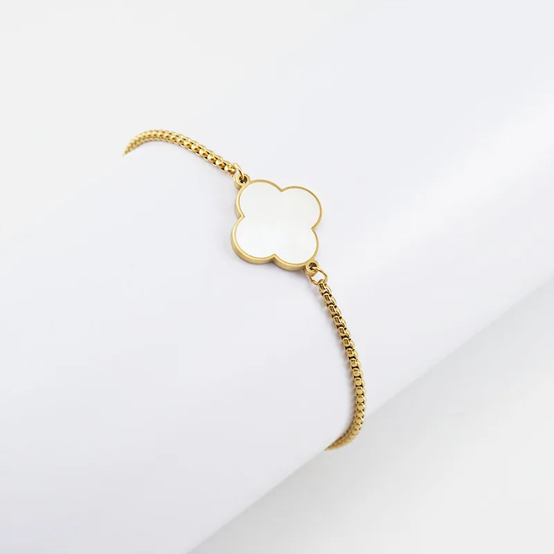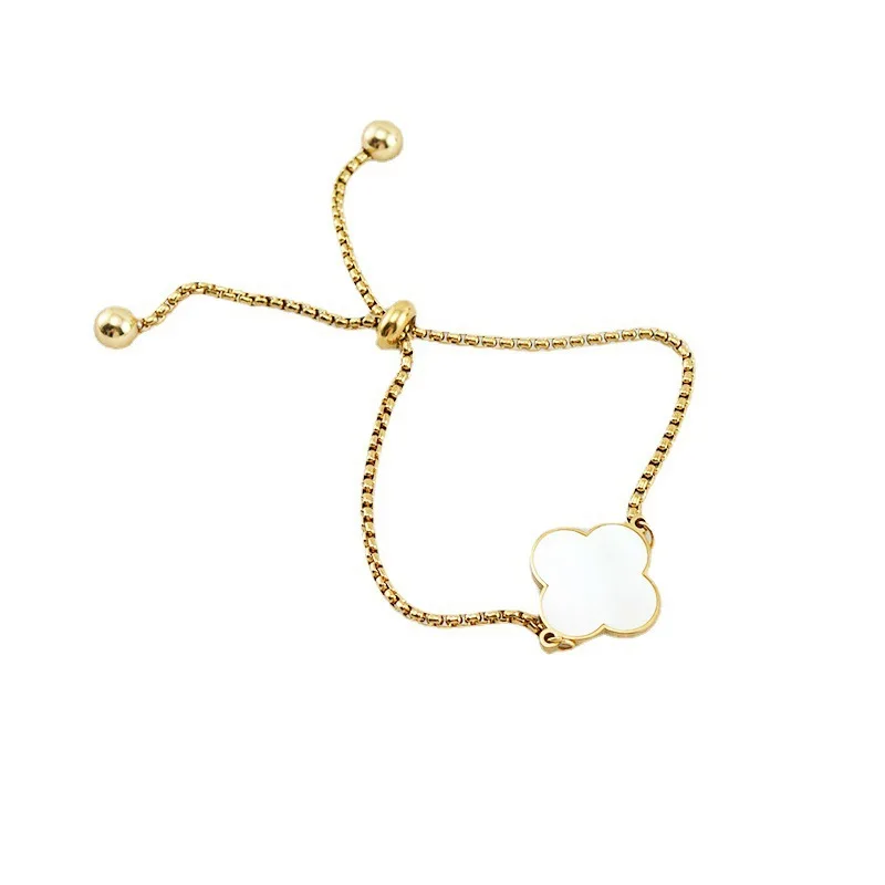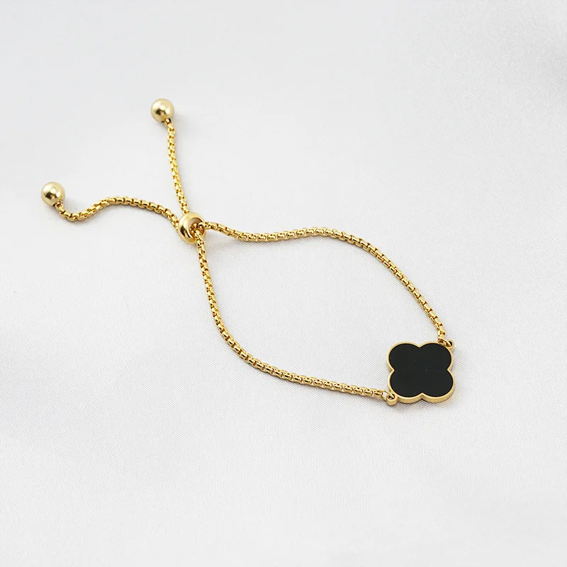 18K Gold Plated Four Leaf Clover Stainless Steel Bracelet for Women Adjustable Link Chain Bracelet for Woman Men