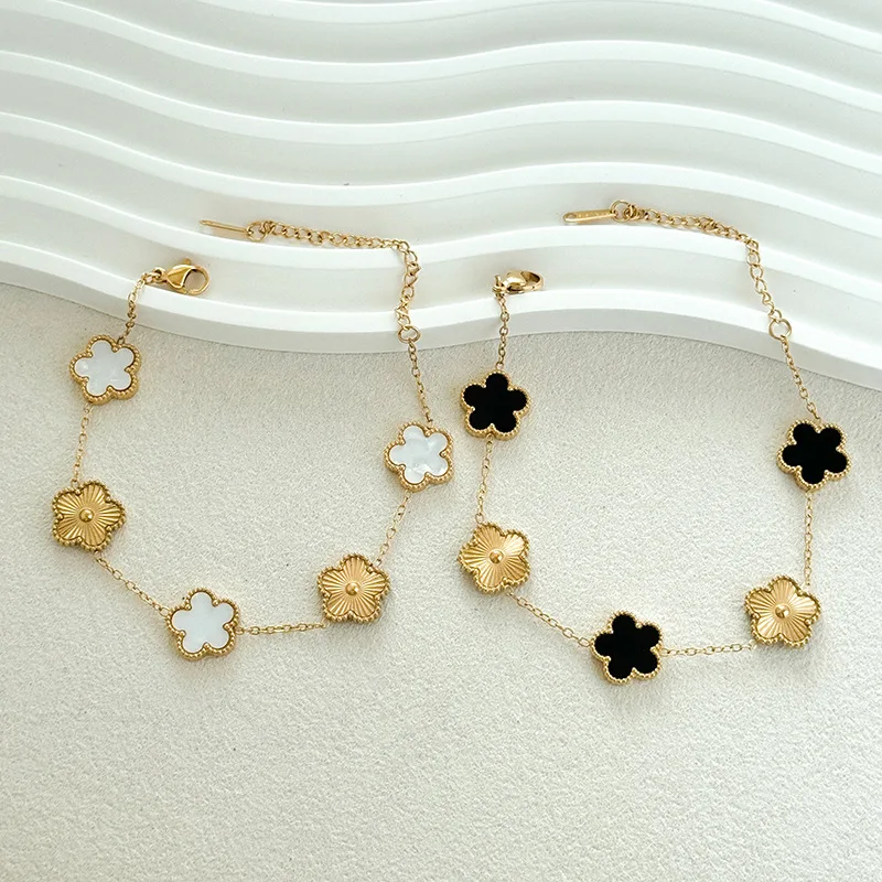 18K Gold Four Leaf Clover Bracelet Stainless Steel Non Tarnish for Woman Men Factory Wholesale